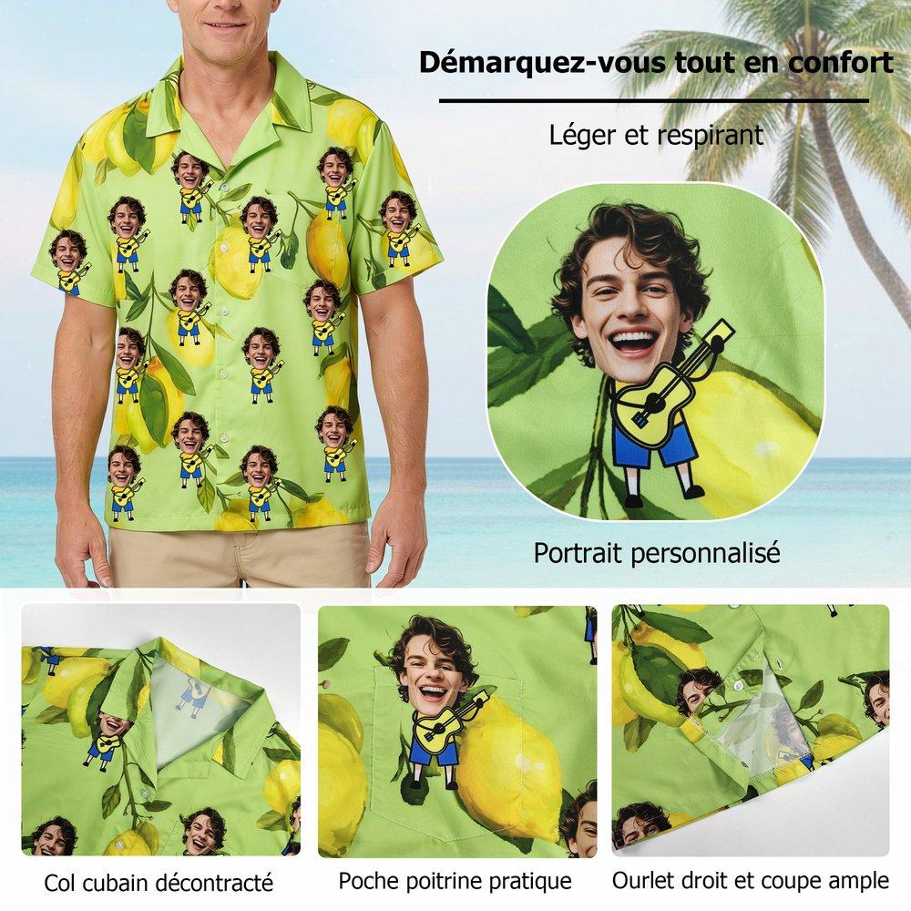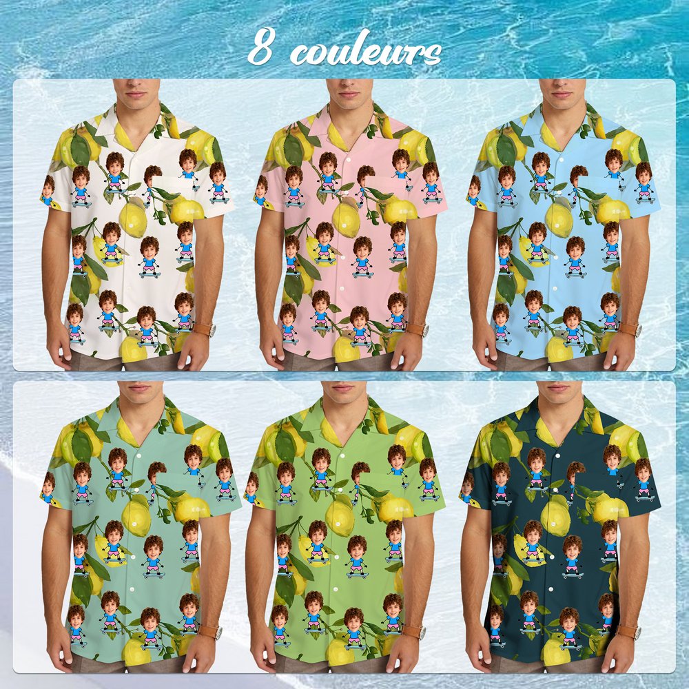 Le citron symbolise le soleil, la fraîcheur et la bonne humeur, et le col en V aéré de style cubain associe subtilement style tropical et style de vie. Le tee-shirt est compatible avec les options de photo personnalisée et d'image de personnage et peut être imprimé avec une photo de vous, d'un ami proche ou d'un parent afin de créer un article souvenir unique en son genre. Qu'il s'agisse d'une sortie en groupe ou d'une réunion de famille, il ne manquera pas d'attirer l'attention.