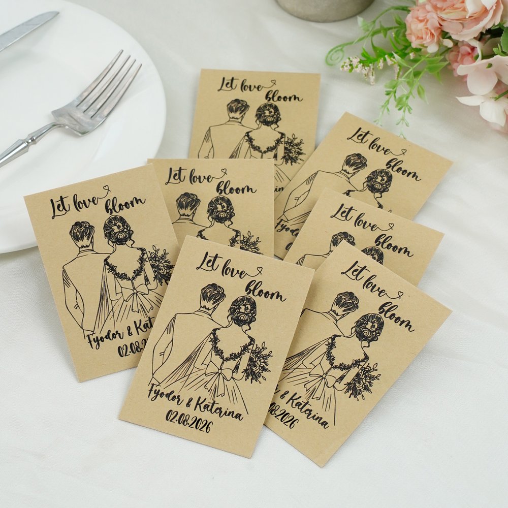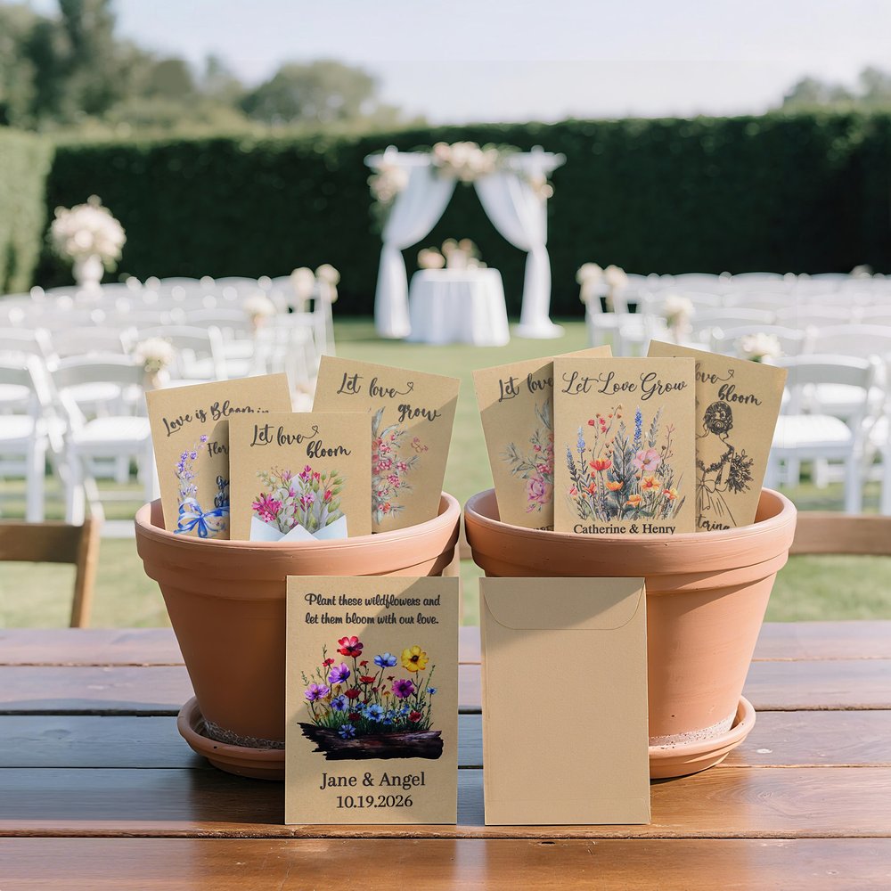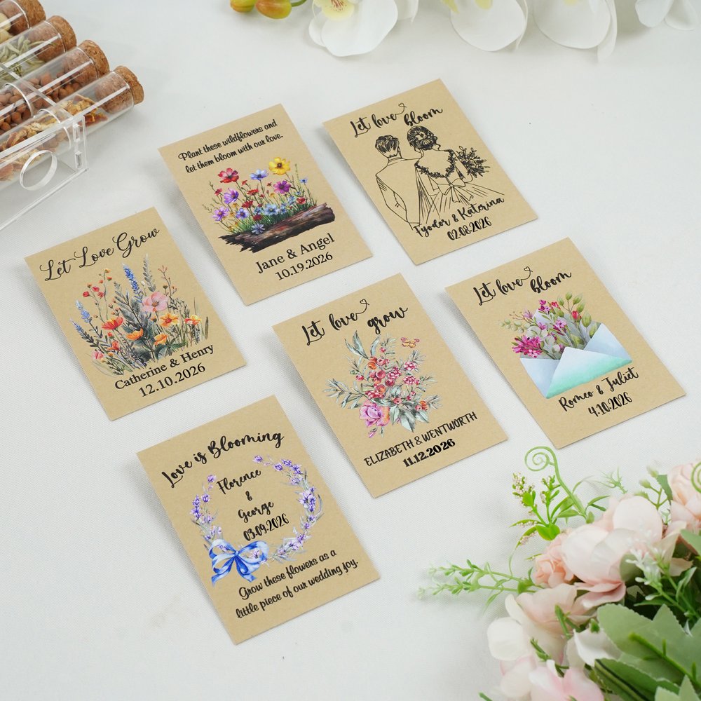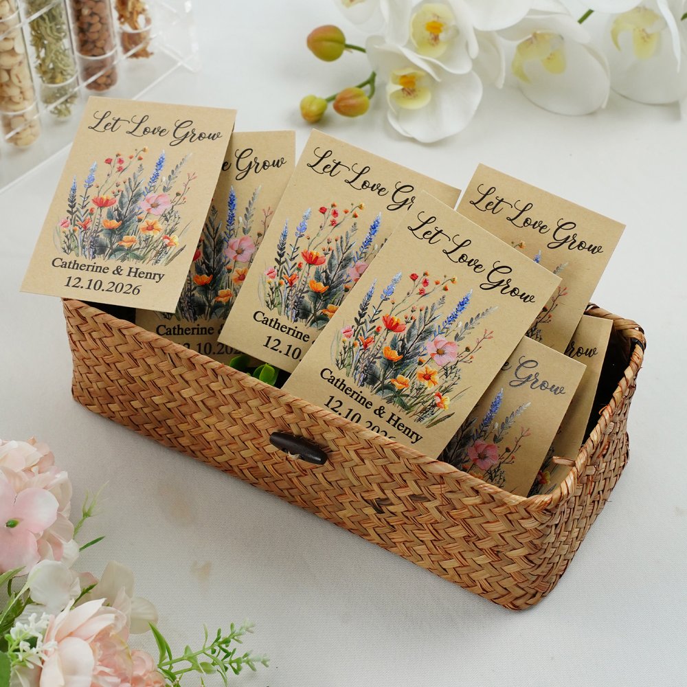 Conçu spécialement pour les couples qui préparent leur mariage, ce cadeau est une attention particulière pour les invités du mariage. Les fleurs et les mots "Let Love Grow" témoignent de la gratitude du couple envers ses invités et de ses espoirs en matière d'amour. Le format écologique des graines s'aligne sur la recherche d'un mode de vie durable des gens d'aujourd'hui, faisant de ce cadeau, qui allie signification commémorative et vitalité, un lien chaleureux entre le couple et ses invités.