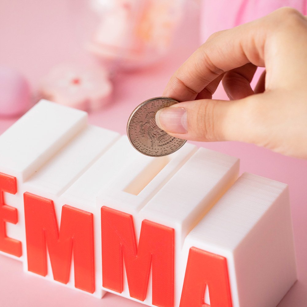 Créez une tirelire unique et spéciale en la personnalisant avec le nom de votre choix. C'est un cadeau mémorable que les enfants chériront.