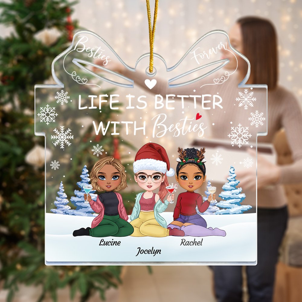 Ornement personnalisé en acrylique en forme de cadeau La vie est plus belle avec les amies Cadeaux d'anniversaire de Noël pour les amies