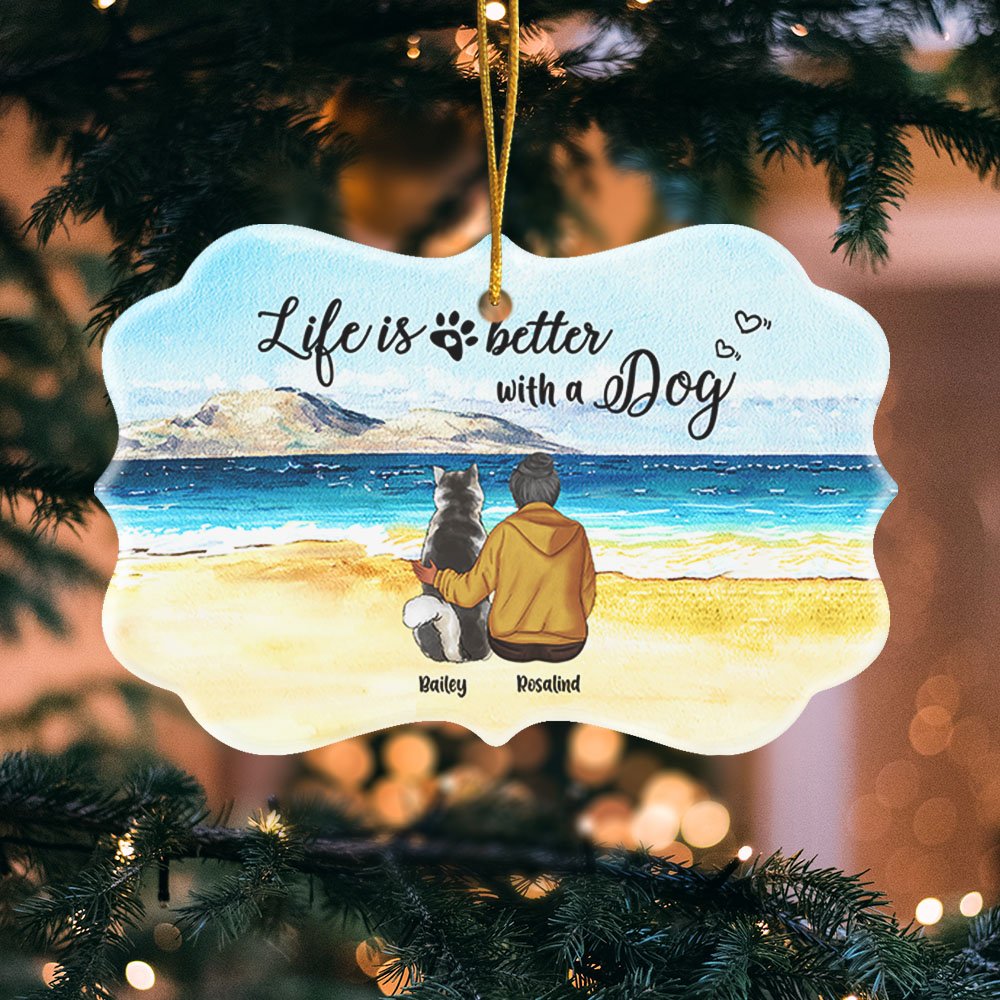 Le message "Life Is Better With A Dog/Dogs" est joliment imprimé sur l'ornement, rappelant les bons moments partagés entre les chiens et leur maître.