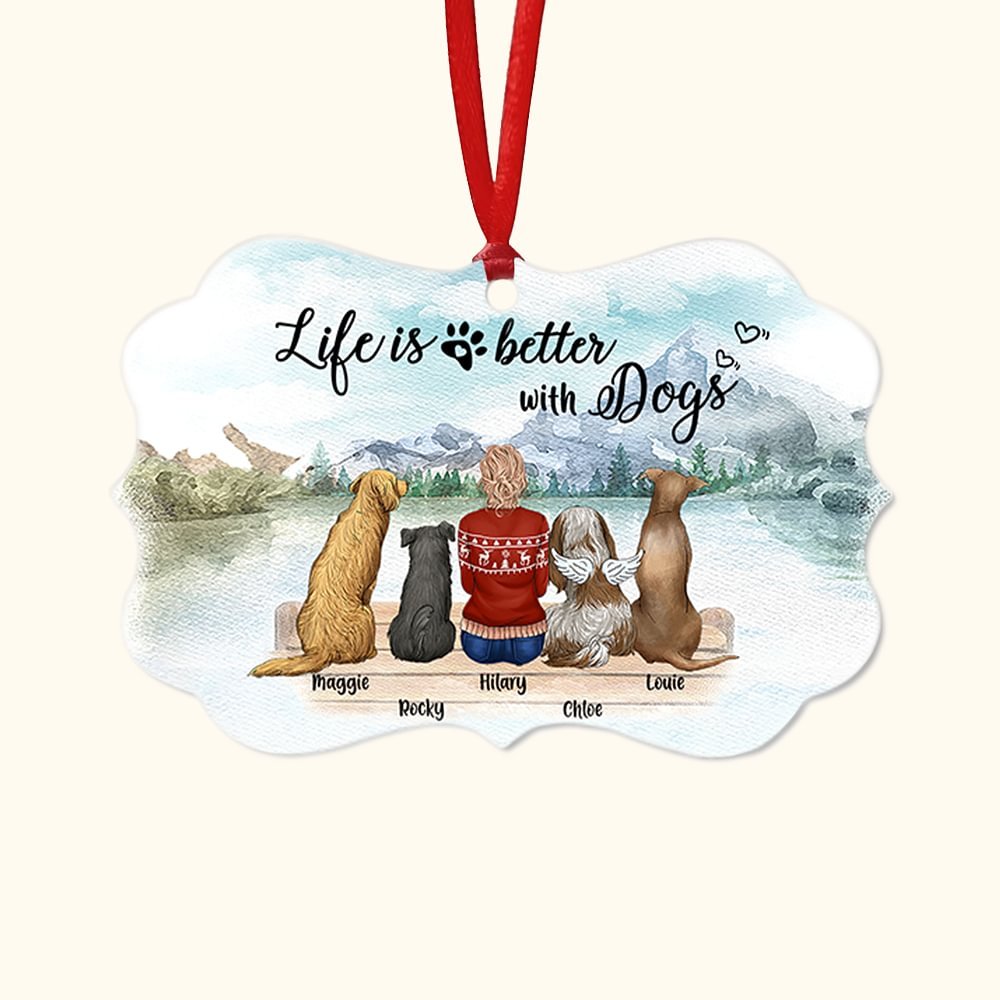 Le message "Life Is Better With A Dog/Dogs" est joliment imprimé sur l'ornement, rappelant les bons moments partagés entre les chiens et leur maître.
