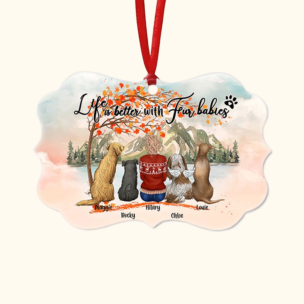 Le message "Life Is Better With Fur Baby/Babies" est joliment imprimé sur l'ornement, rappelant les bons moments partagés entre les chiens et leur maître.
