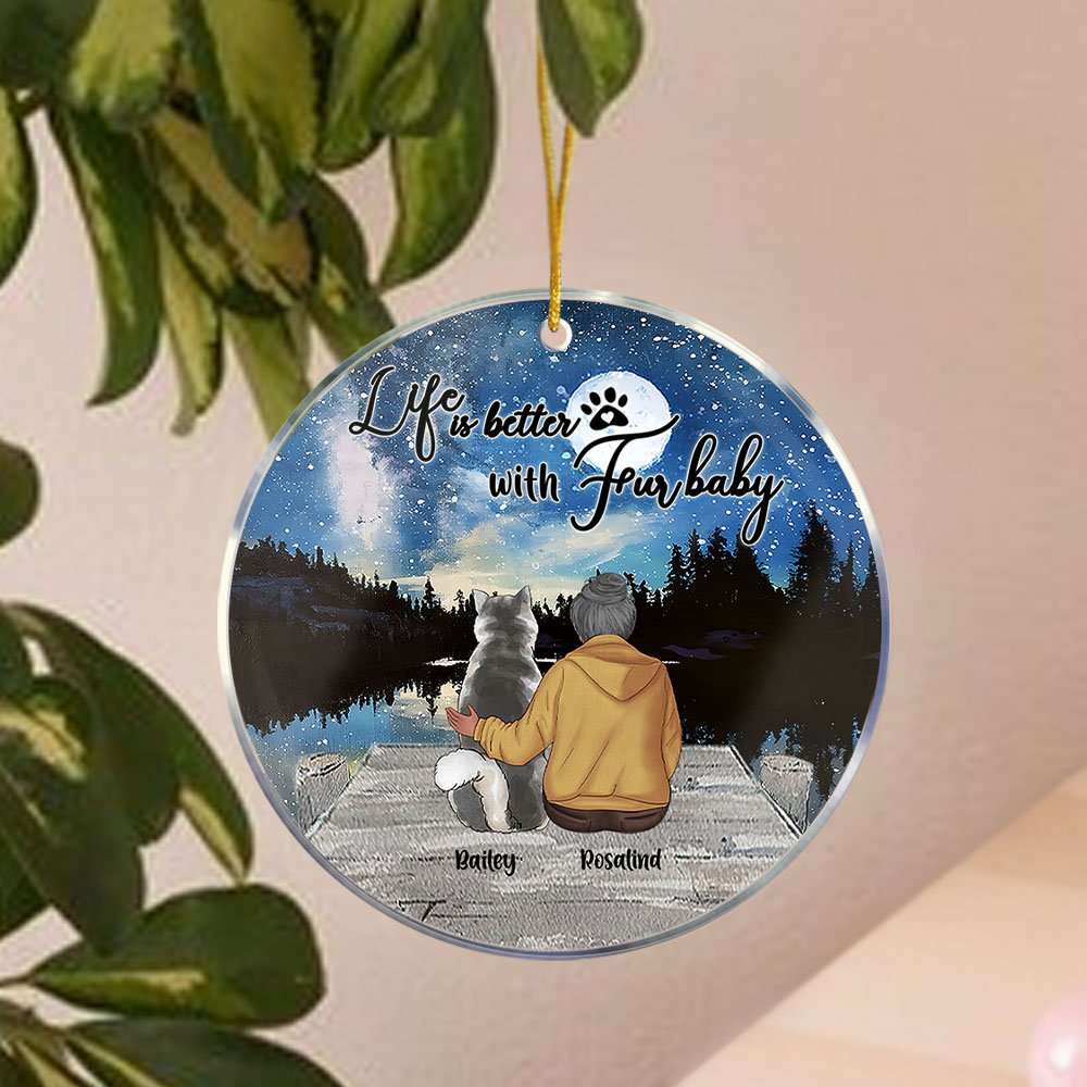 La toile de fond du ciel étoilé ajoute un sentiment de tranquillité aux décorations. Le slogan "Life is Better with Fur Baby" témoigne de votre amour et de votre manque pour les chiens. La forme ronde suspendue est douce, ce qui la distingue des autres accessoires et montre vraiment votre amour pour votre chien.