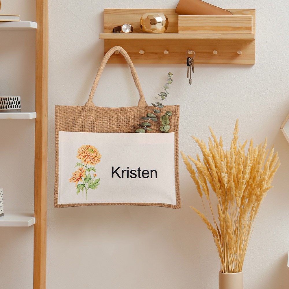 Le sac de plage Fleur de naissance permet aux clients de choisir et d'écrire leur fleur de naissance et leur nom, ce qui en fait un sac de plage personnalisé unique qui peut se démarquer des autres.