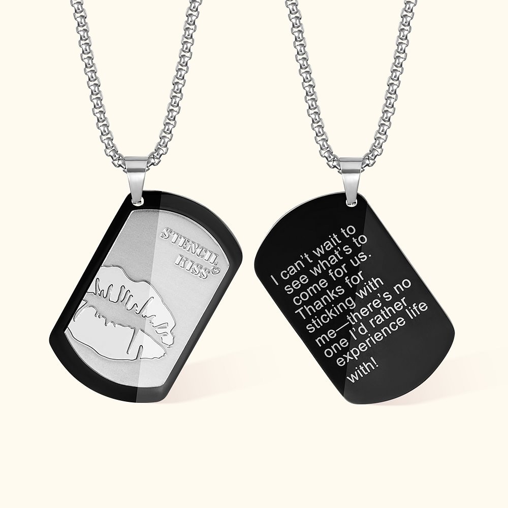 Le collier personnalisé avec impression sur les lèvres est un cadeau unique et attentionné pour lui. Avec ses couleurs noir et argent et son texte personnalisé, ce collier est un accessoire élégant et personnel qui fera en sorte que tout homme se sente spécial.