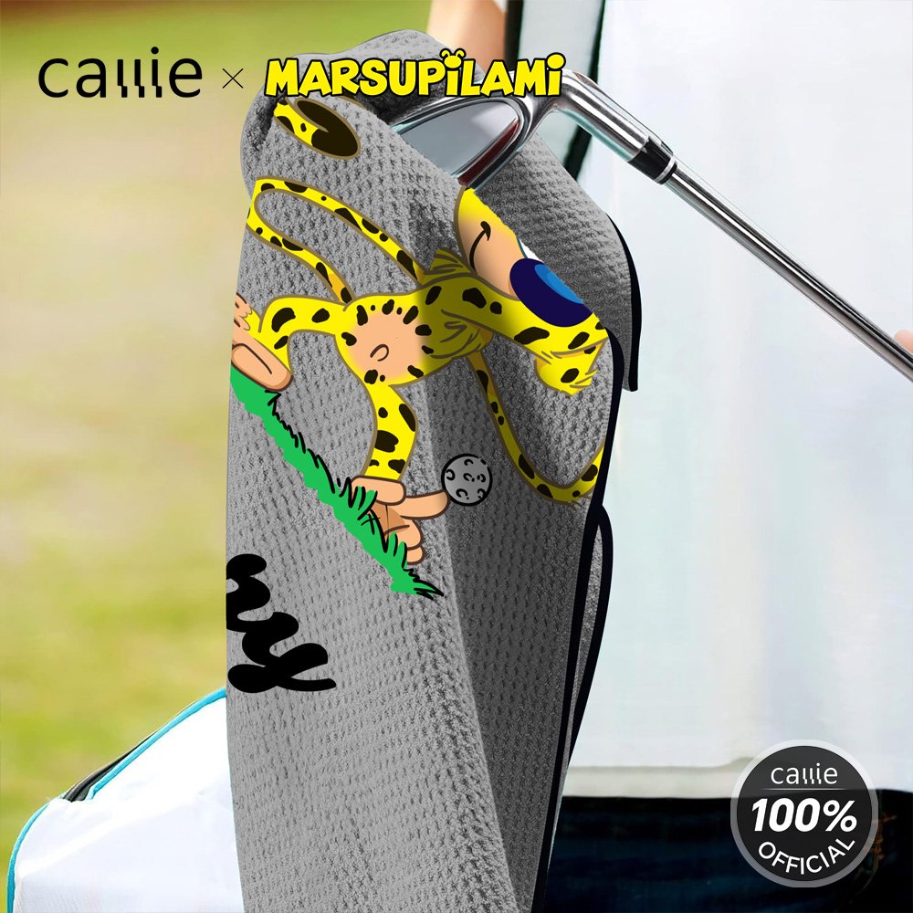 Serviette de golf gaufrée magnétique avec clip de suspension Cadeau d'anniversaire pour joueur de golf | Callie × Marsupilami®.