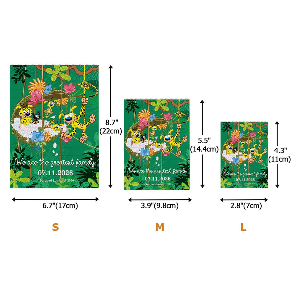 Créé par le dessinateur belge André Franquin en 1952, le Marsupilami est une créature vivant dans la jungle, dotée d'une fourrure jaune, de taches noires et d'une longue queue super flexible. Ce puzzle représente non seulement l'adorable et vif Massobirami gambadant au milieu d'une végétation luxuriante, mais il permet également de personnaliser les textes, incarnant ainsi parfaitement le véritable sens de l'amour et de la famille.