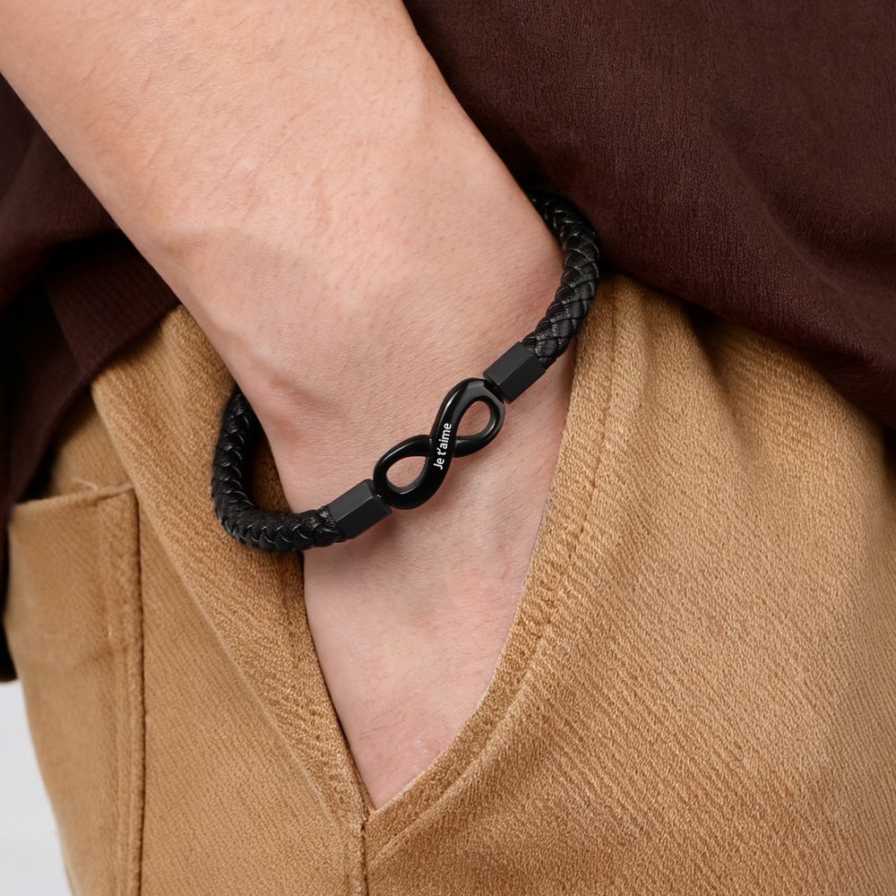 Le corps principal du bracelet est fabriqué en cuir PU de première qualité, ce qui lui confère un toucher doux et agréable. Le symbole de l'infini au cœur du bracelet est fabriqué en acier inoxydable de haute qualité, méticuleusement poli et hypoallergénique, ce qui lui permet de conserver son éclat. Sa finition imperméable de premier ordre garantit que le bracelet résiste à l'usure quotidienne, y compris au lavage à la main, à la pluie et à la sueur, empêchant le cuir de se déformer ou de durcir.