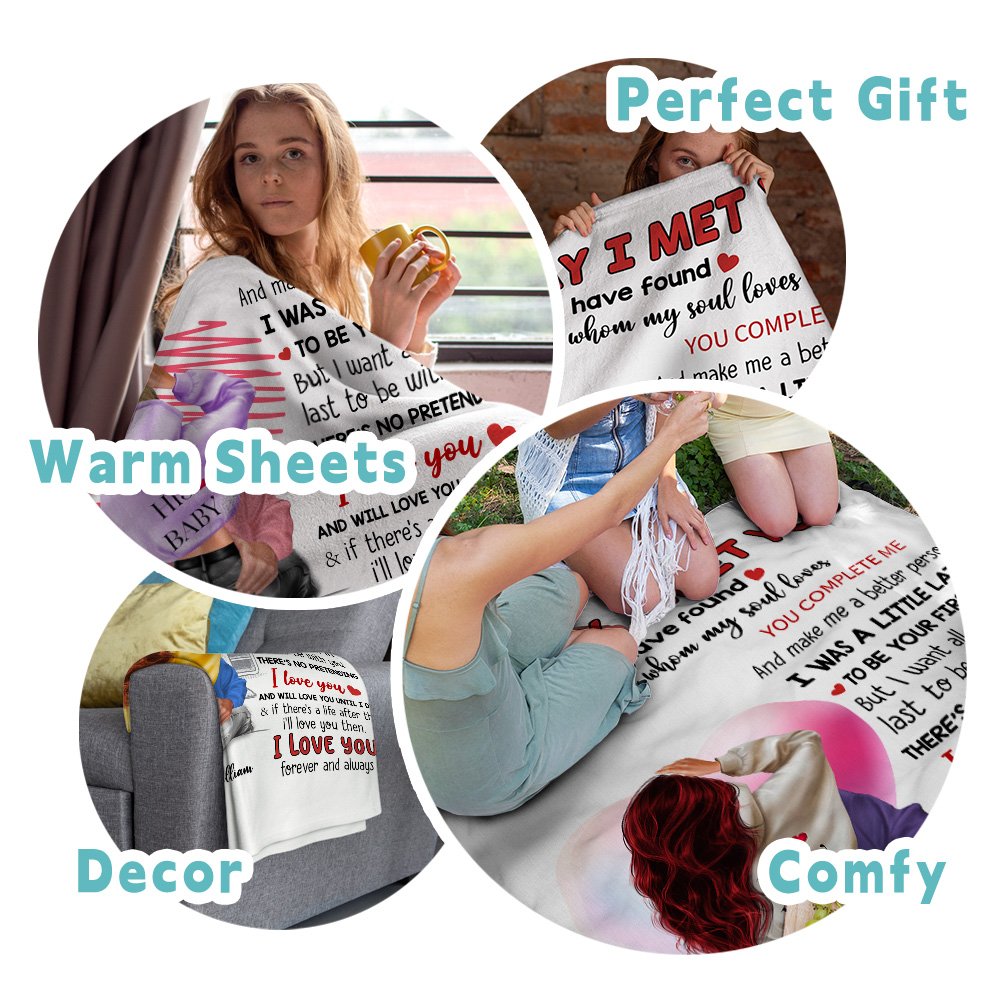 Couverture Personnalisée Poème d'Amour avec Paysage Urbain Décoration de Maison Cadeau pour Couple