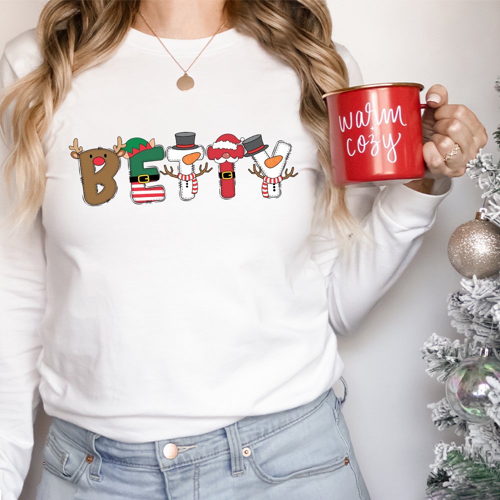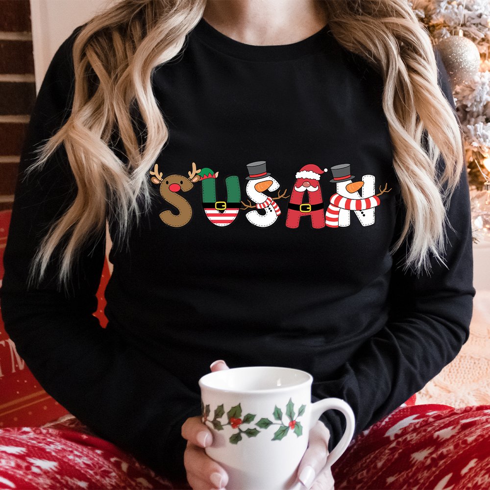 Le design de notre ensemble assorti pour la famille de Noël est tout simplement adorable. Il comporte des éléments sur le thème des fêtes, avec le Père Noël, le renne, le bonhomme de neige et d'autres symboles emblématiques de Noël. Chaque vêtement peut être personnalisé avec les noms de vos proches, ce qui en fait un souvenir de Noël idéal pour chaque membre de votre famille.
