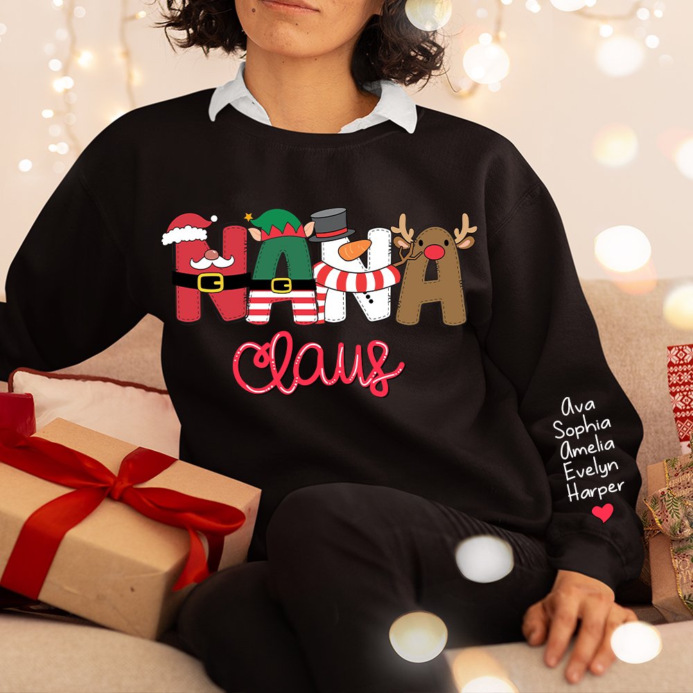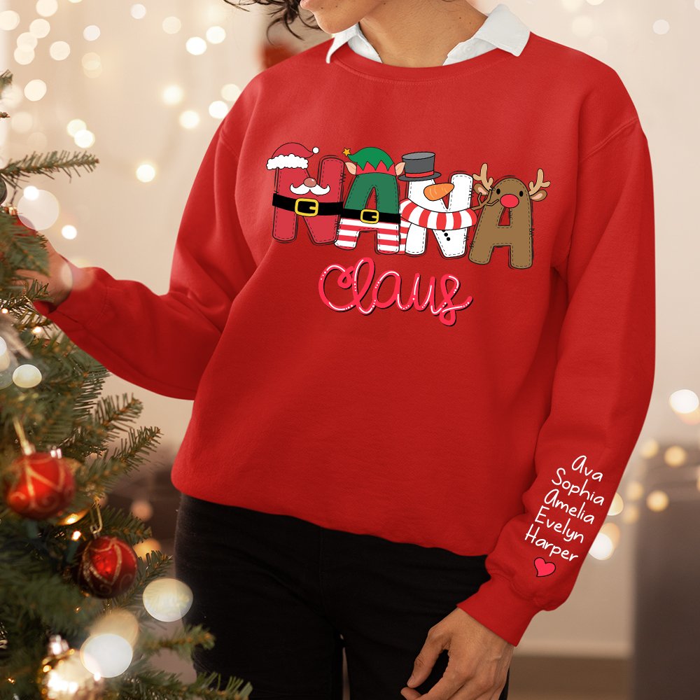 Ce vêtement est un cadeau unique et personnalisé qui vous permet d'y ajouter le nom de vos enfants. La police de caractères sur la poitrine combine les motifs du Père Noël, du lutin, du bonhomme de neige et du renne pour un look festif qui ajoutera une touche de gaieté à n'importe quelle tenue.