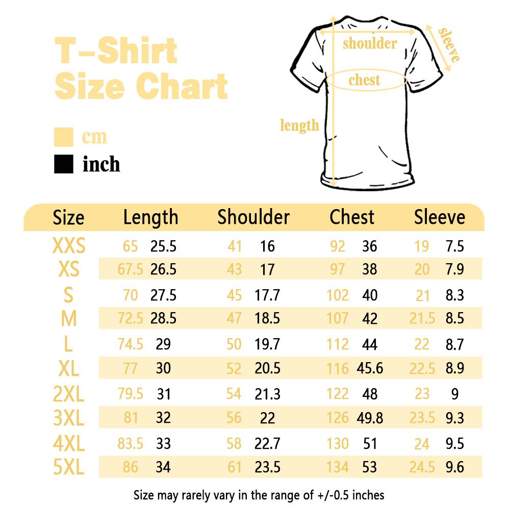 Taille et poids du T-shirt : XXS, XS, S, M, L, XL, 2XL, 3XL, 4XL, 5XL - 210g