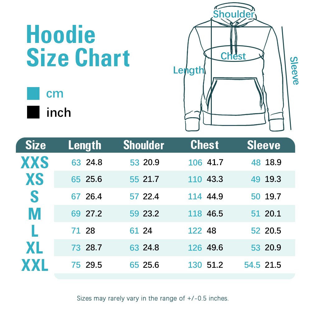 Taille et poids du sweat à capuche : XXS, XS, S, M, L, XL, 2XL - 600g