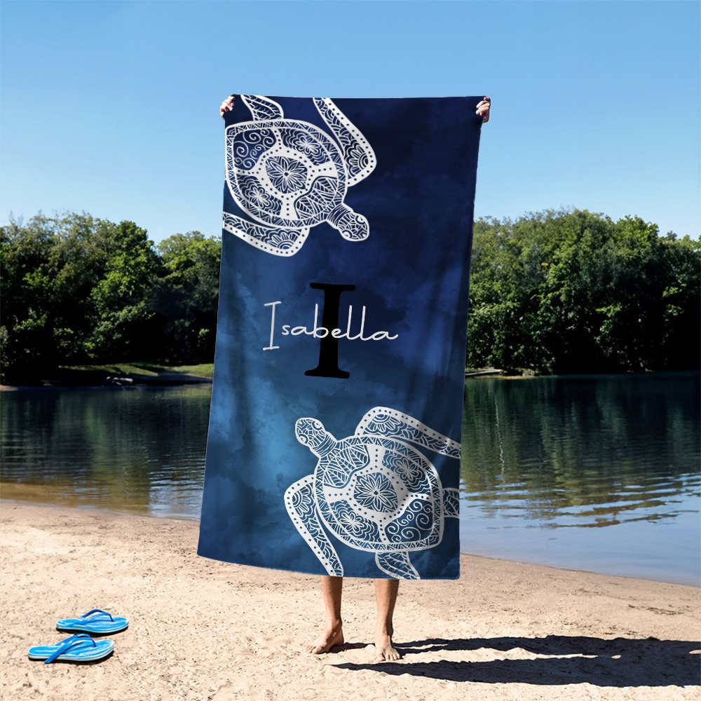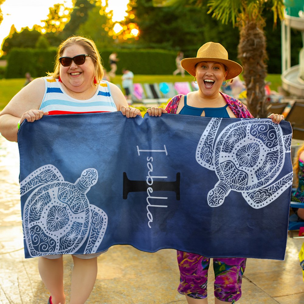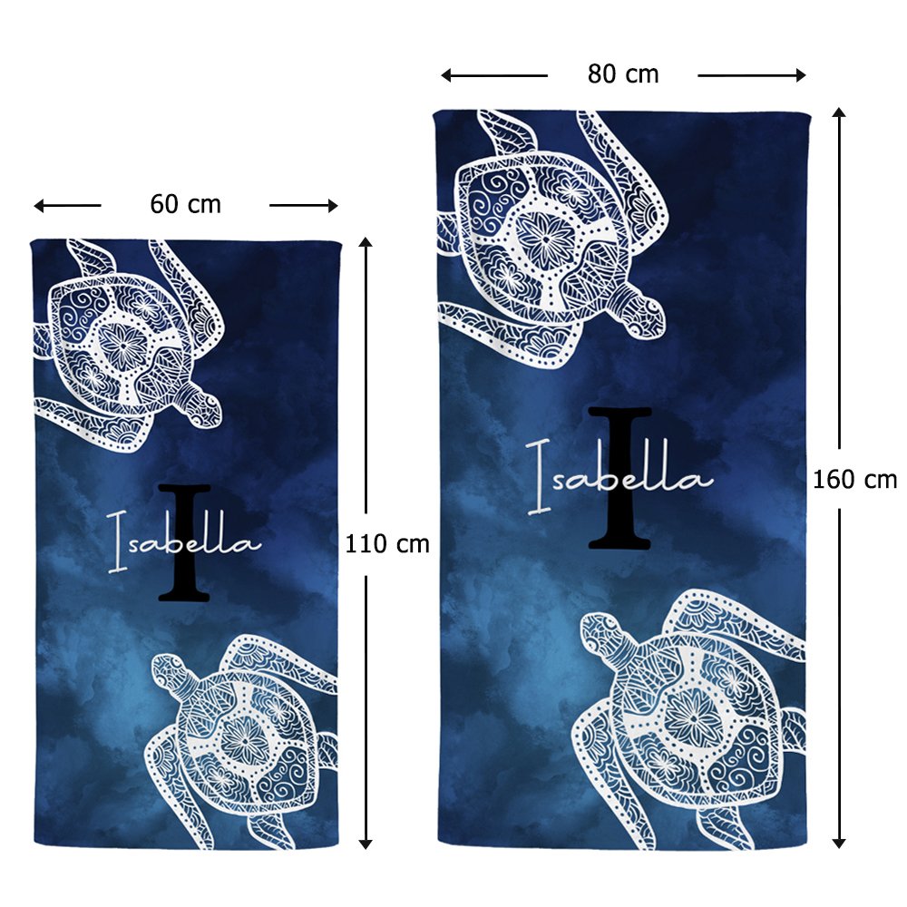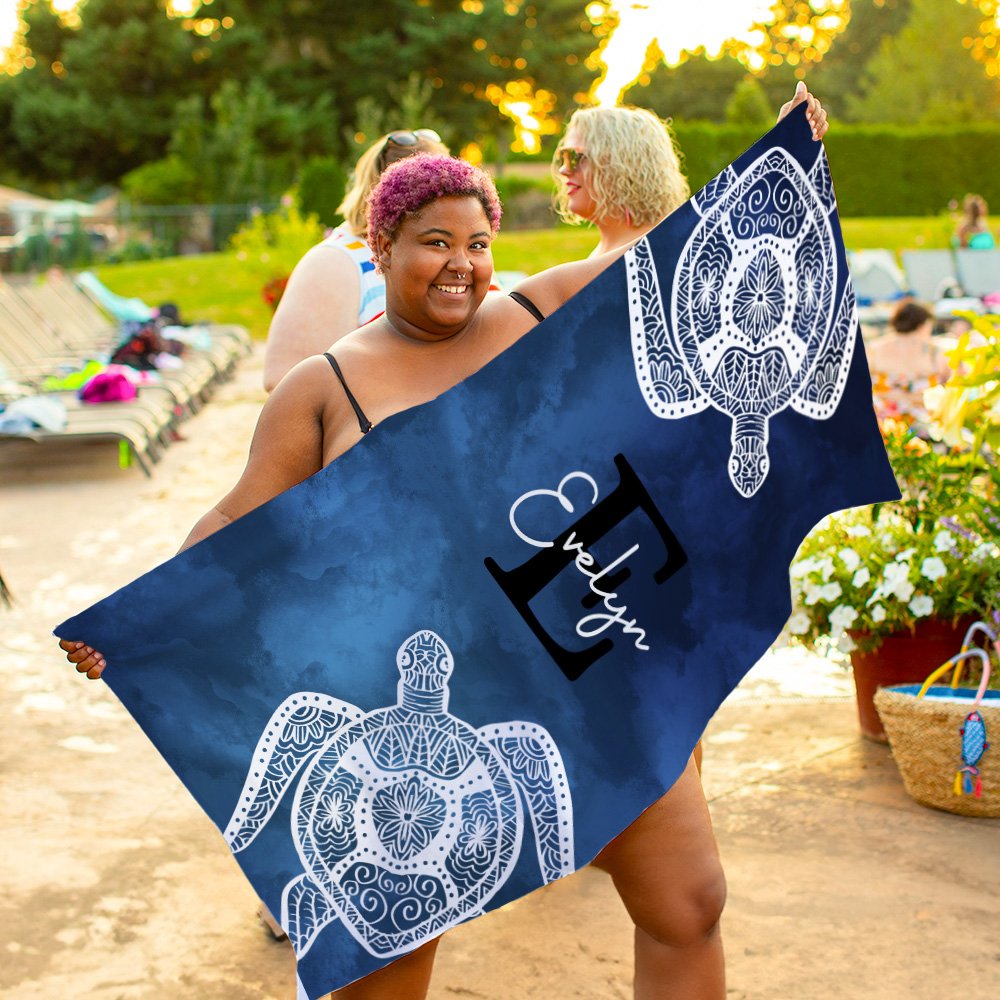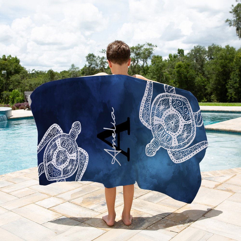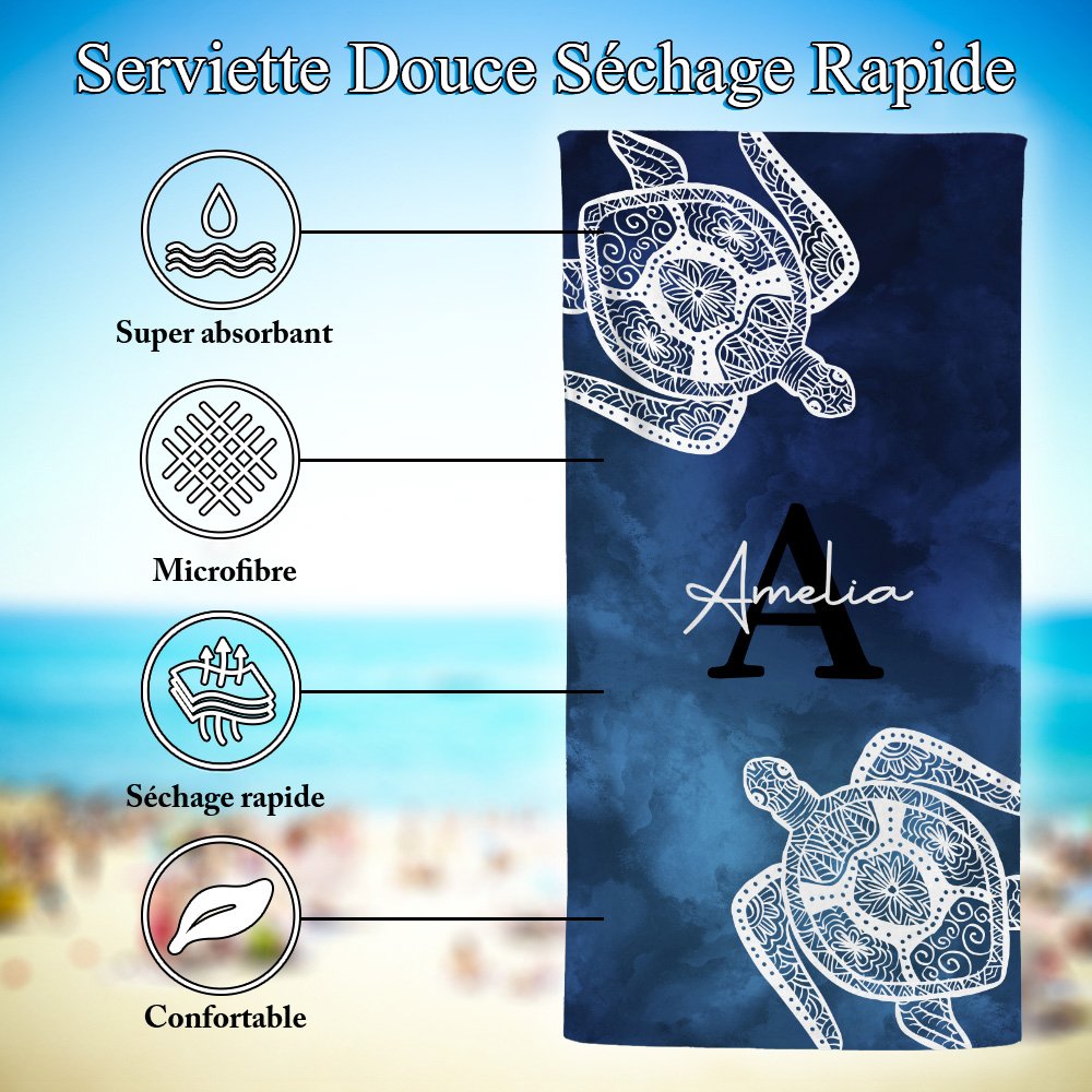 Chaque serviette de plage présente un motif unique de mandala et de tortue, combiné à un effet tie-dye, illustrant la fusion de la mode et de l'art. Vous pouvez également personnaliser votre nom pour montrer votre style artistique unique. Cette serviette de plage apporte une expérience de relaxation ultime et est idéale pour les amoureux de la plage et ceux qui aiment prendre des bains de soleil.