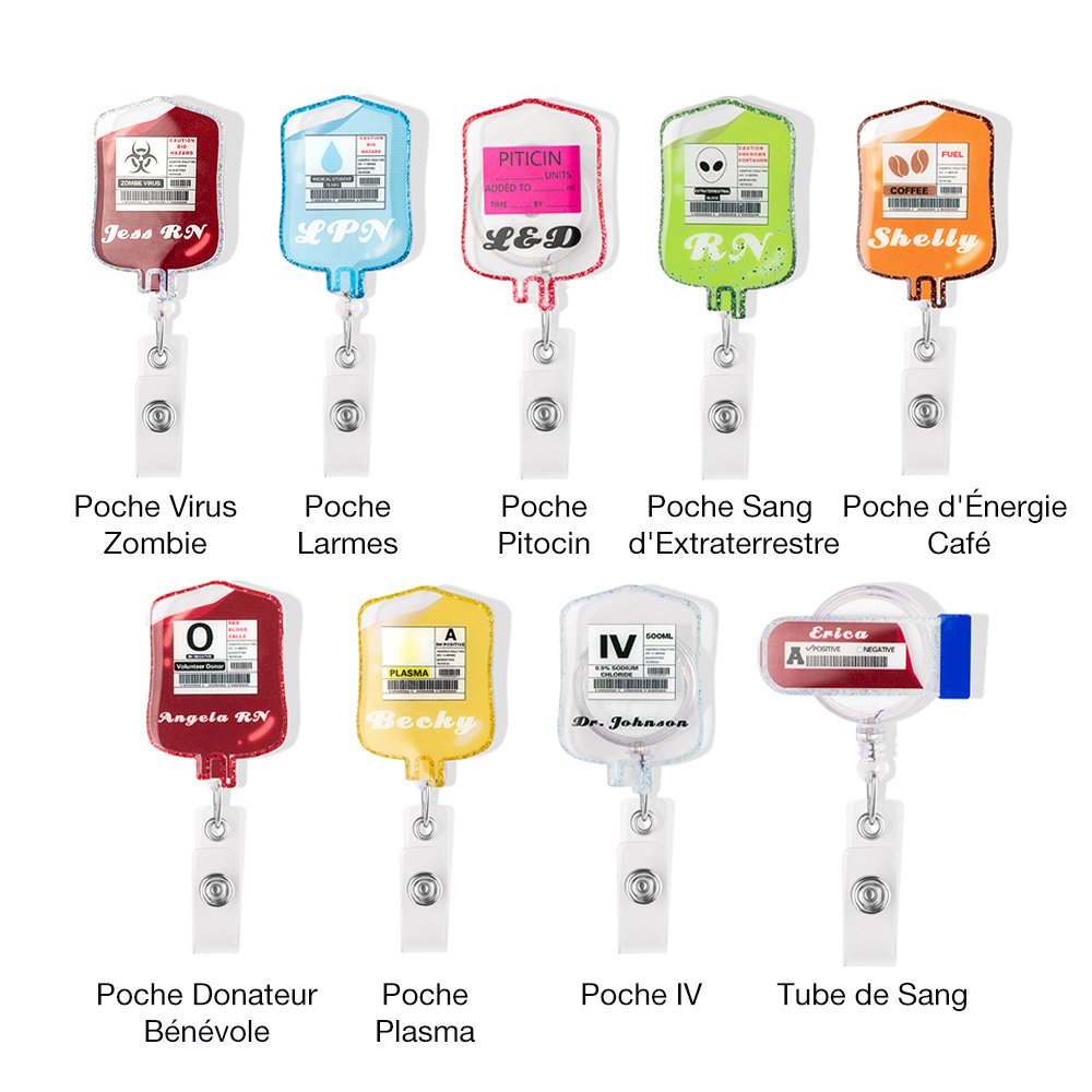 Le design de nos enrouleurs de badges s'inspire de l'aspect d'un sachet de liquide goutte à goutte, avec des détails pailletés pour une apparence amusante et accrocheuse. Ce design unique distingue nos enrouleurs de badges des enrouleurs traditionnels. Nous proposons 9 modèles différents, chacun pouvant être personnalisé avec un nom ou un titre. Non seulement ces badges affichent votre identité, mais ils ajoutent également une touche personnelle qui peut contribuer à atténuer les tensions sur le lieu de travail.