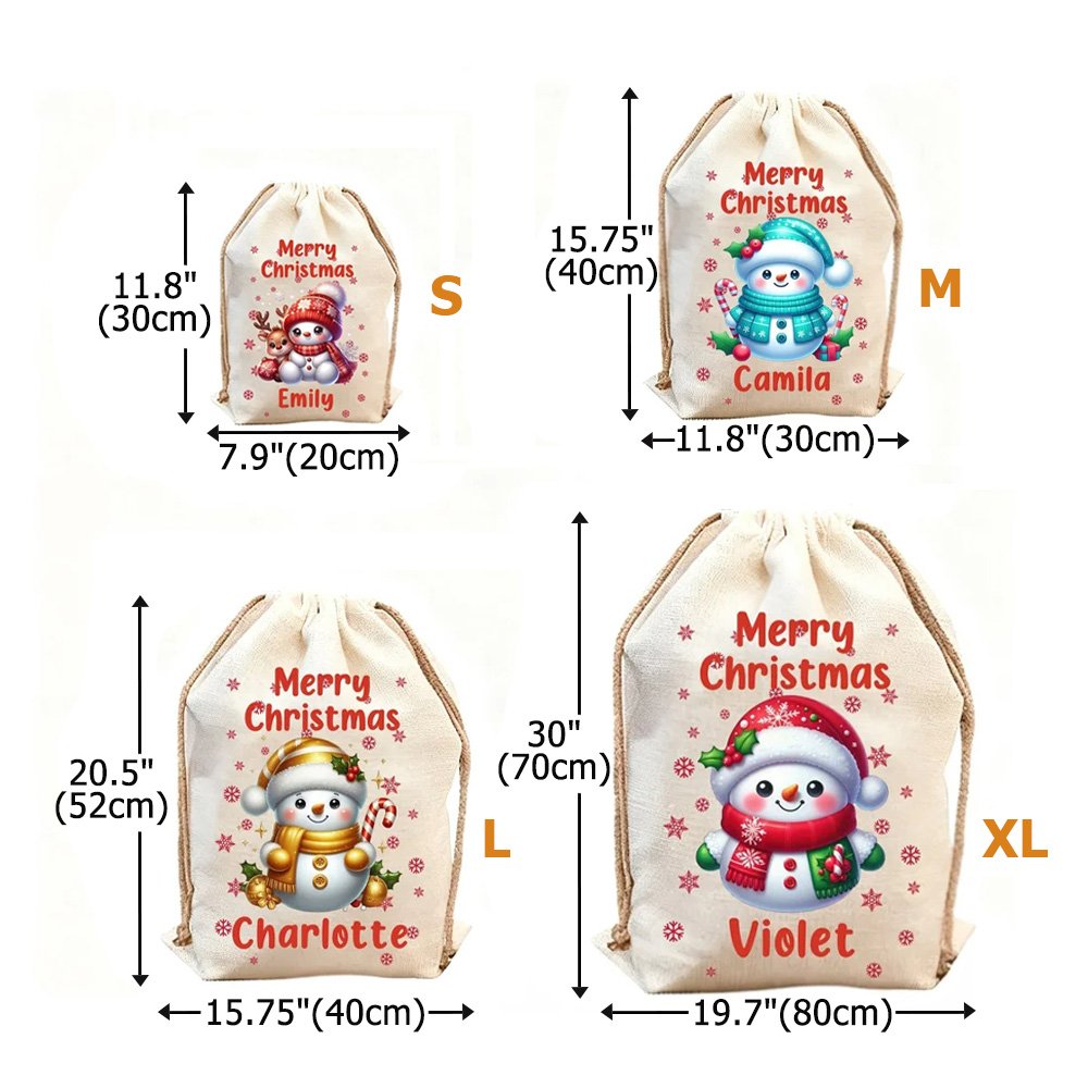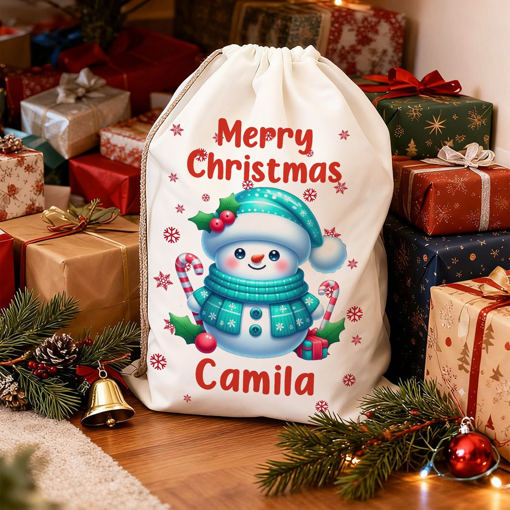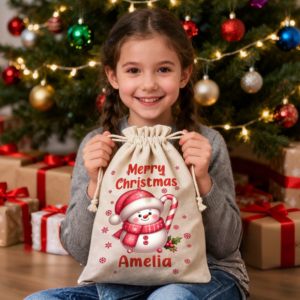 Idéal pour les enfants, les petits-enfants, les amis et la famille, ce sac personnalisé en forme de bonhomme de neige fait du déballage une joyeuse surprise. C'est une façon réfléchie de créer des souvenirs durables et de préserver l'esprit de Noël.