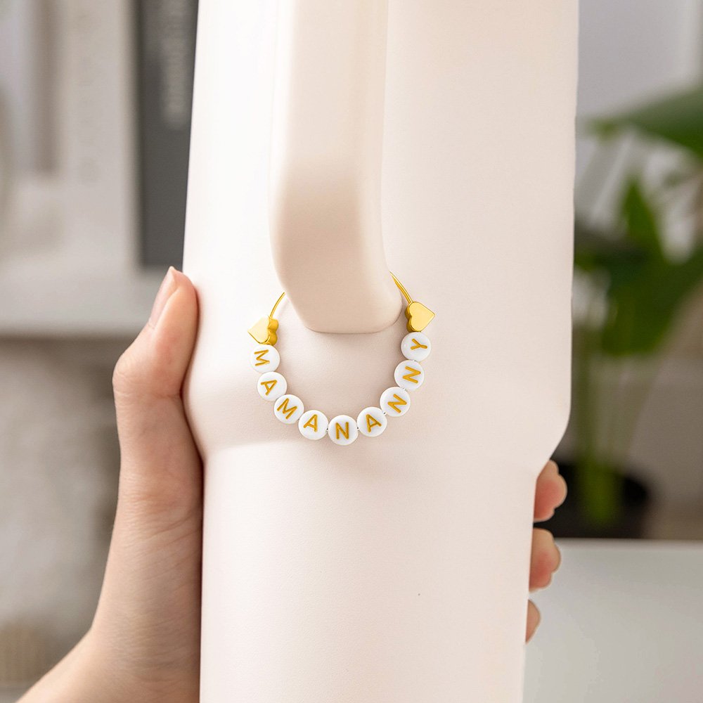 Décorez votre gobelet Stanley avec cette charmante breloque de cœur personnalisée. Cette breloque est livrée avec des perles de 1 à 9 lettres, afin que vous puissiez personnaliser votre nom ou vos initiales pour qu'ils reflètent votre personnalité et votre style.
