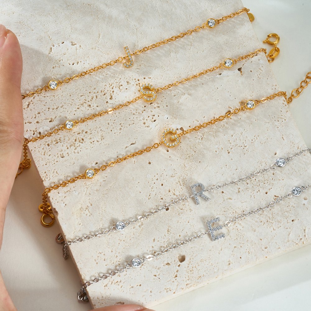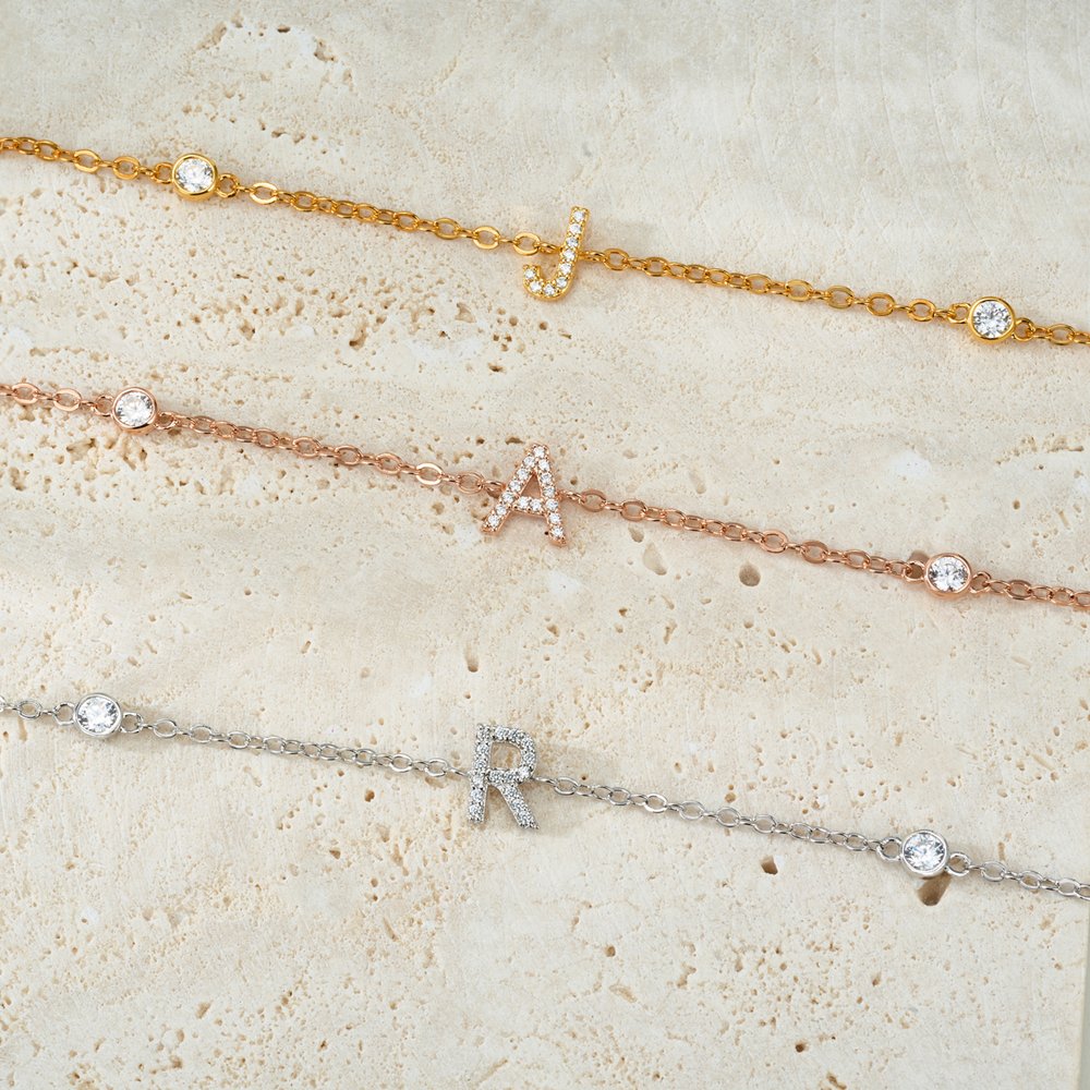 Bracelet Minimaliste Personnalisé Zircon Initial Anniversaire Noël Cadeau de Mariage pour Amies Amis Demoiselles d'Honneur