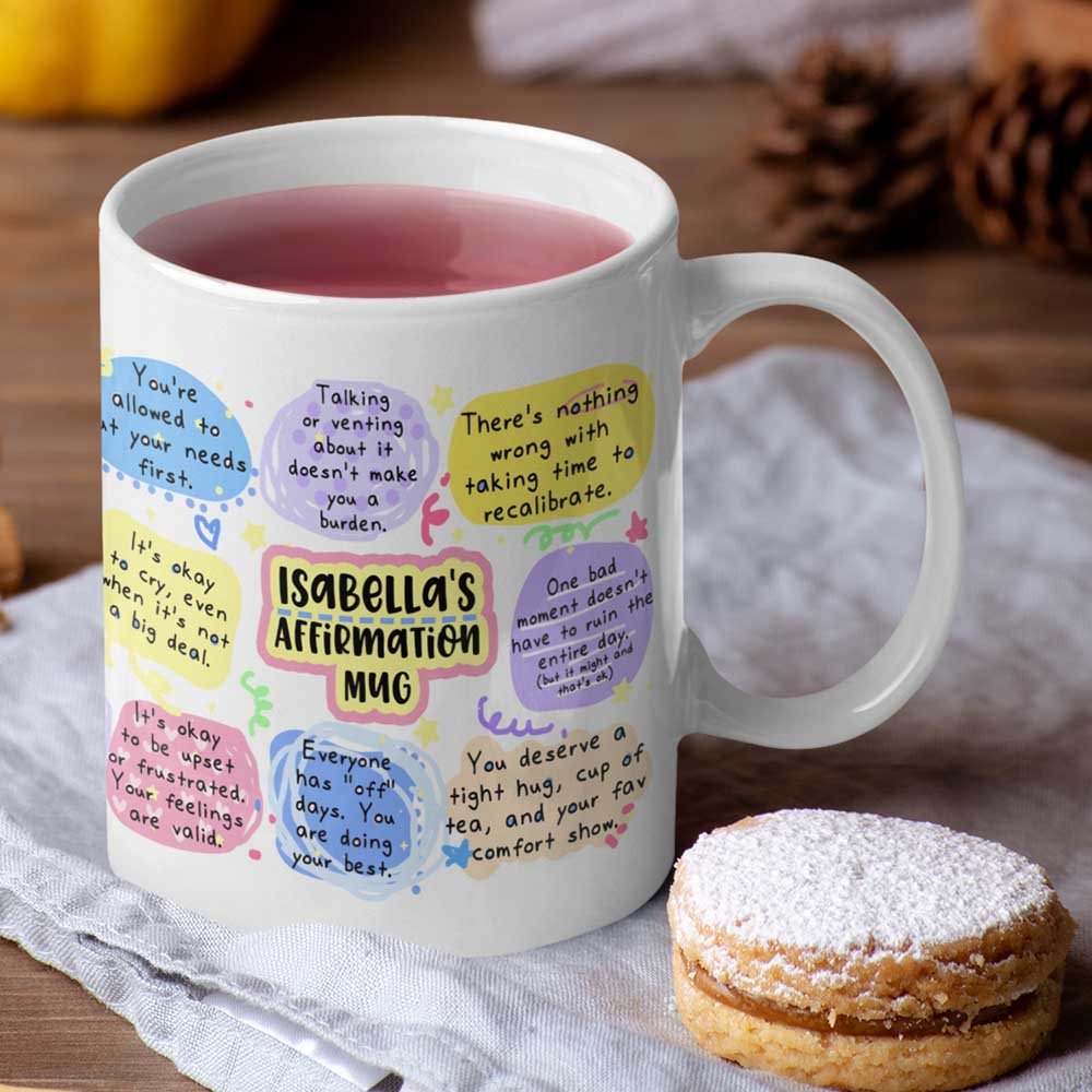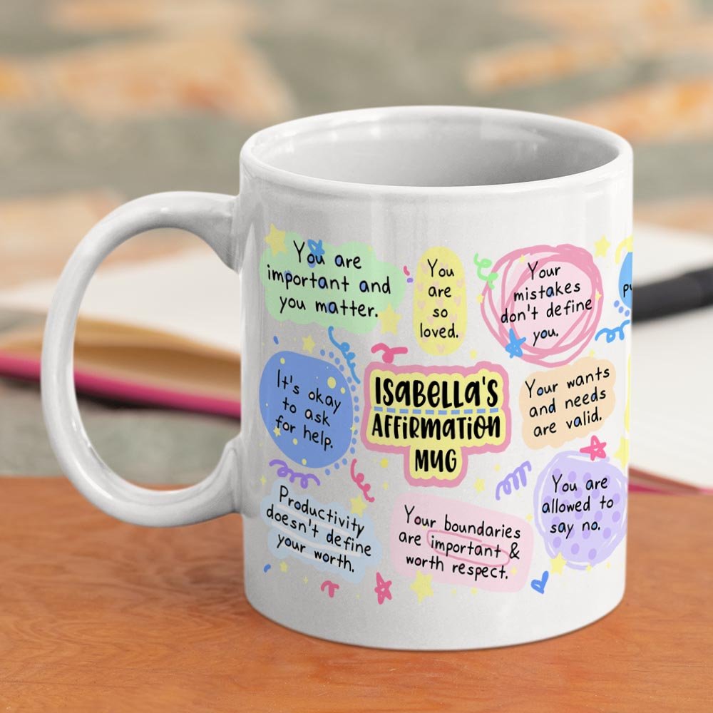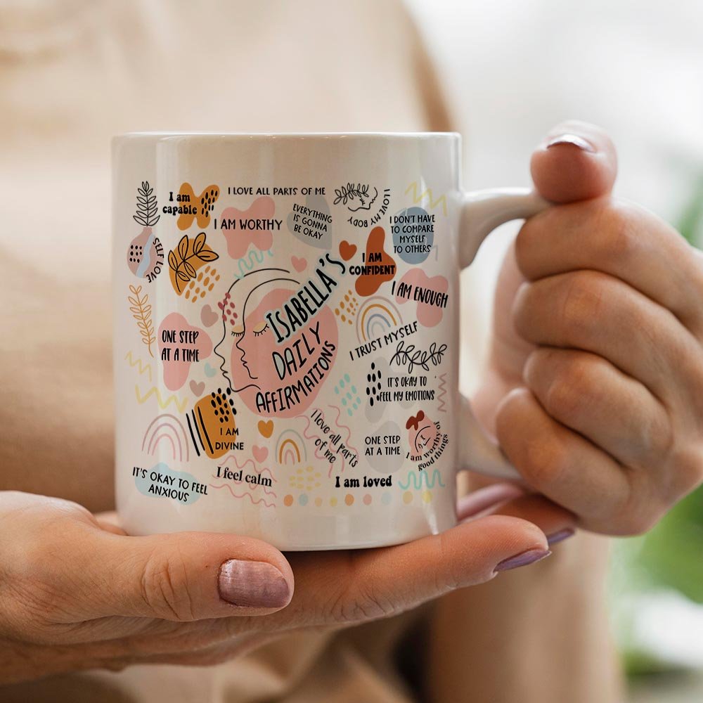 Tout le monde a un moment où ils se sentent impuissants et pas confiants, chaque fois qu'ils voient la citation positive sur ce mug, "Je suis capable / Je suis digne / Vous êtes tellement aimé / Vos erreurs ne vous définissent pas / Vos désirs et vos besoins sont valides" va lentement laisser tomber les concepts négatifs, retrouver ma force, et faire face à la vie positivement.