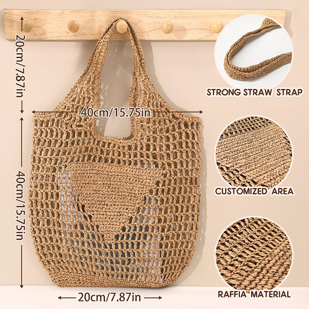 Fabriqué principalement à partir de paille de papier sélectionnée et respectueuse de l'environnement, ce sac présente une texture naturelle tissée à la main. Léger mais durable, il est confortable à porter sans être lourd, tandis que le tissage ajouré améliore la respirabilité.