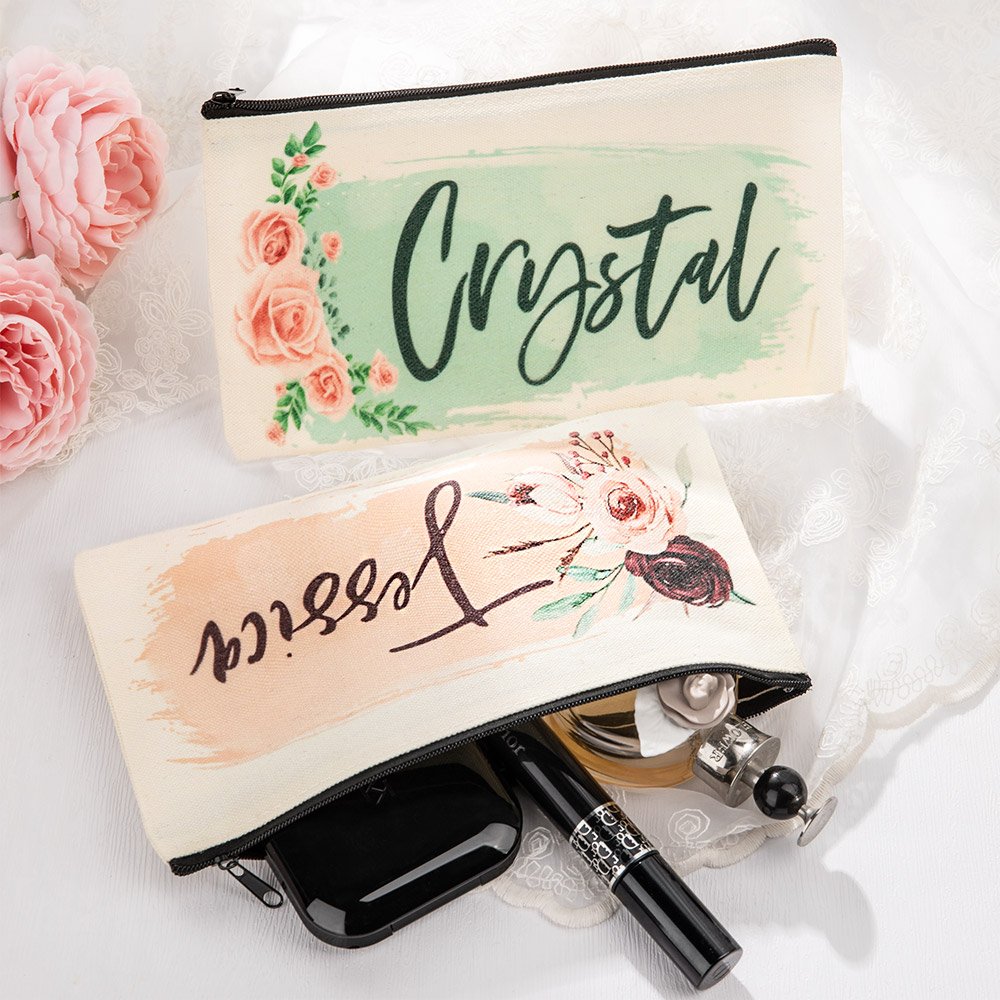 Cette trousse de maquillage pour demoiselle d'honneur est pratique, elle peut contenir des cosmétiques, des bagues, des écouteurs, des téléphones portables, des rouges à lèvres, des clés, etc. Elle est légère, la fermeture à glissière est pratique à transporter, et nécessaire en voyage.