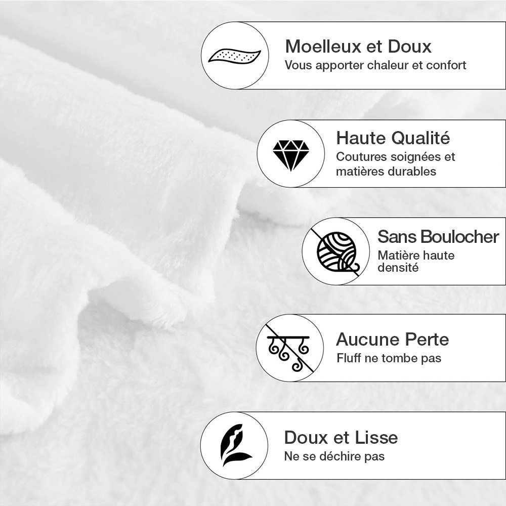 Nos couvertures sont fabriquées à 100 % en flanelle anti-boulochage pour assurer un grand confort et une grande douceur au toucher. Elle est soyeuse et douce au toucher, sans émanations ni composés nocifs. Facile à nettoyer, lavage à la main ou en machine à froid, cycle délicat.