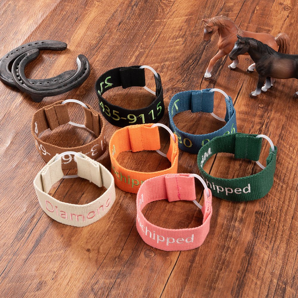 Chaque bracelet d'identification peut être personnalisé avec des chiffres et du texte brodés, ce qui vous permet de le personnaliser en fonction de votre cheval. Cette caractéristique unique améliore l'identification et met en valeur la personnalité et le style de votre cheval, ce qui en fait un cadeau judicieux pour tout amateur de chevaux.