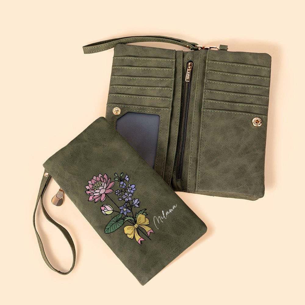 Ce portefeuille se distingue par son design unique et vibrant en cuir multicolore. Chaque portefeuille est une véritable œuvre d'art, imprimée d'un magnifique motif de fleurs d'anniversaire, illustrant la tendresse et la délicatesse des femmes. Le nom peut également être personnalisé sur le portefeuille, ajoutant ainsi un style personnel exclusif à chaque propriétaire.