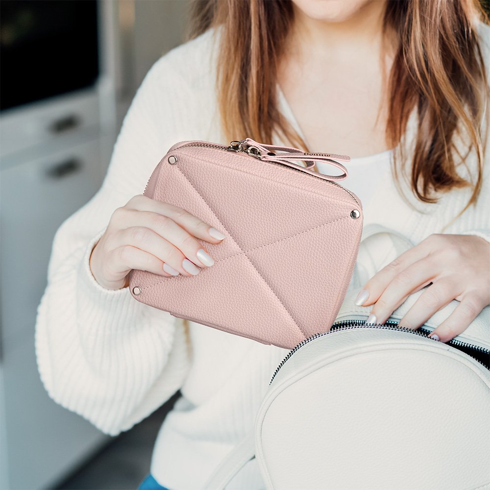 Ce sac de rangement adopte des tons violet taro, combinant un sens de la technologie avec la beauté, la générosité et la simplicité. Le nom peut être gravé sur la surface en cuir de la fermeture à glissière, ce qui souligne le caractère exclusif de l'objet et ajoute une dimension rituelle à la vie quotidienne.