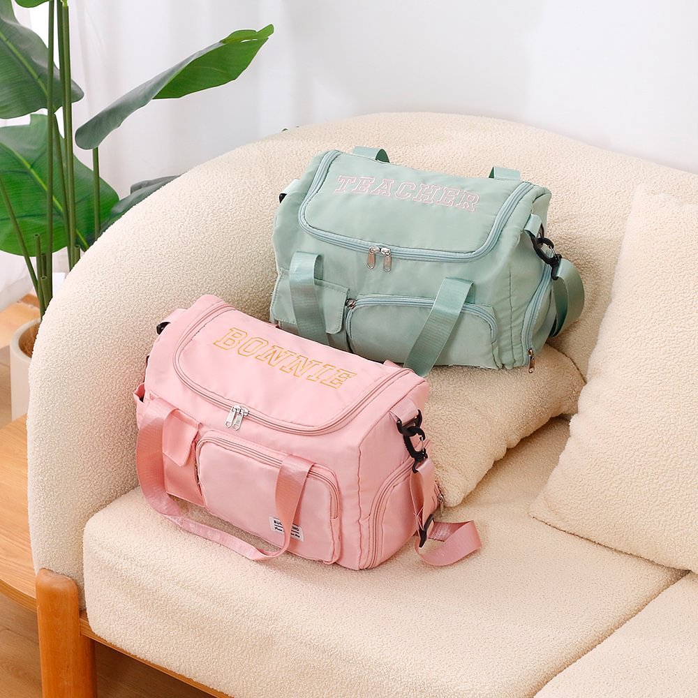 Ce sac de week-end a une forme élégante et des couleurs vives. Le nom peut être personnalisé par broderie, ce qui rend l'ensemble plus texturé, mais aussi plus facile à endommager. Vous avez le choix entre plusieurs couleurs de fils de broderie. Choisissez votre couleur préférée pour créer un sac élégant et unique.