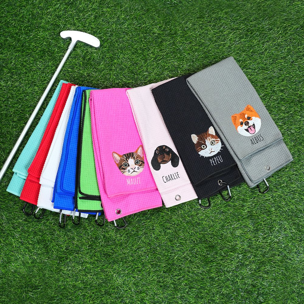 Cette serviette est conçue pour la performance et le style. Elle est parfaite pour essuyer la transpiration et garder vos grips et vos balles de golf propres pour un meilleur jeu. En plus de son utilité, elle sert de pièce décorative sur votre sac de golf, vous permettant d'afficher votre style personnel et votre amour pour votre animal de compagnie sur le parcours, créant ainsi une combinaison parfaite.