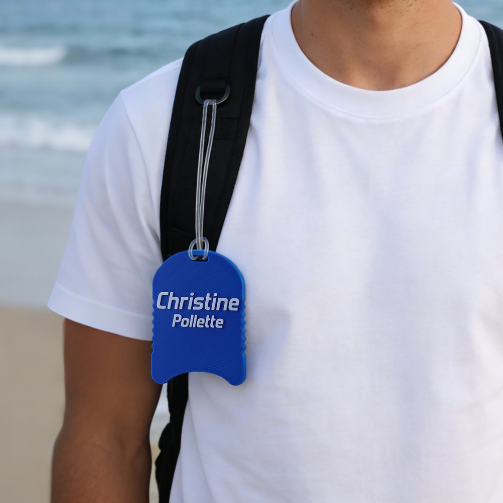 Cette étiquette à bagage unique prend la forme d'une planche de natation classique, incarnant parfaitement l'esprit des amateurs de natation. Elle permet de personnaliser jusqu'à deux lignes de texte et offre une variété de couleurs vives telles que le noir, l'or, le rouge et le blanc. La technologie d'impression 3D crée un lettrage distinct et en relief facile à lire, faisant de chaque étiquette un accessoire unique pour mettre en valeur votre passion de la natation et votre style personnel.