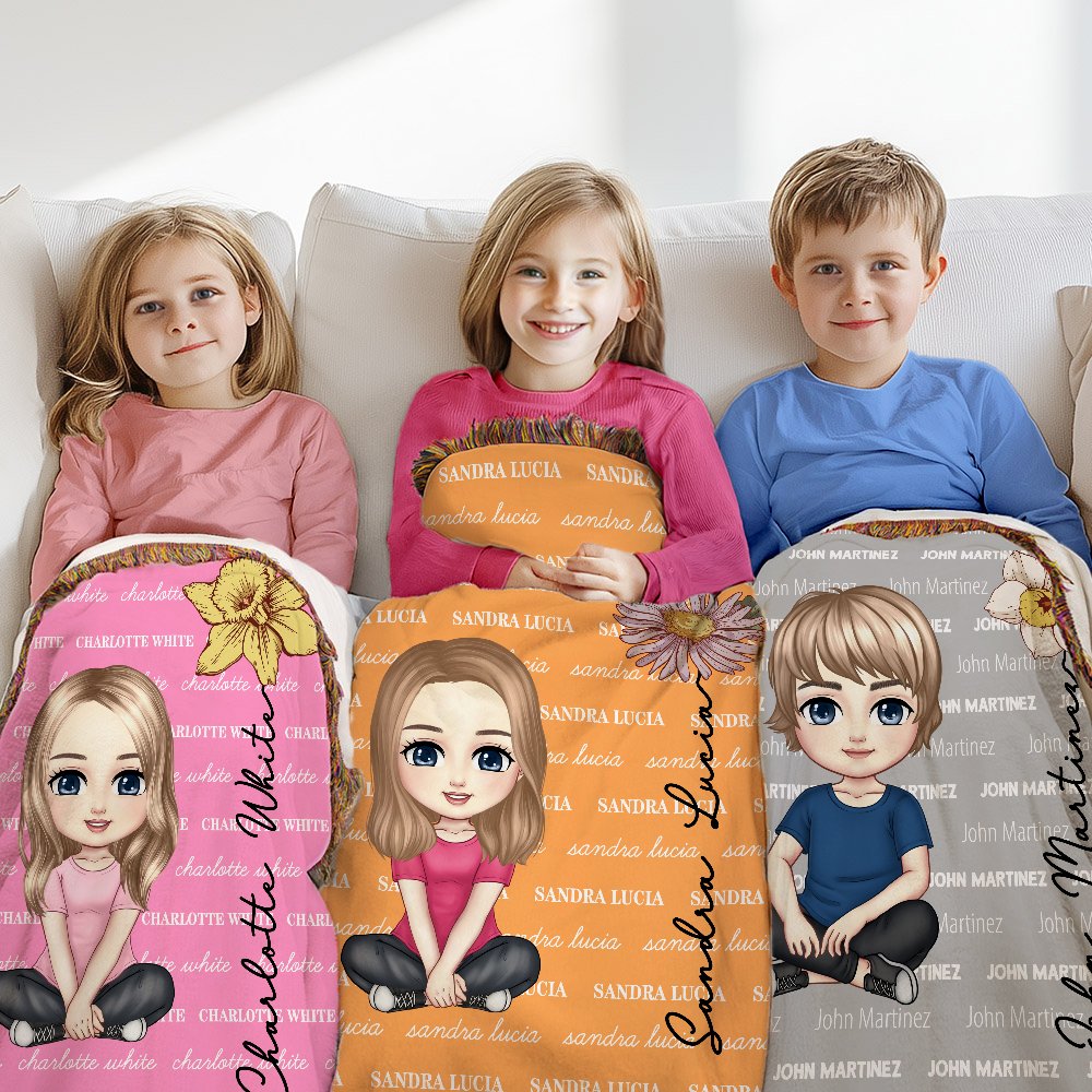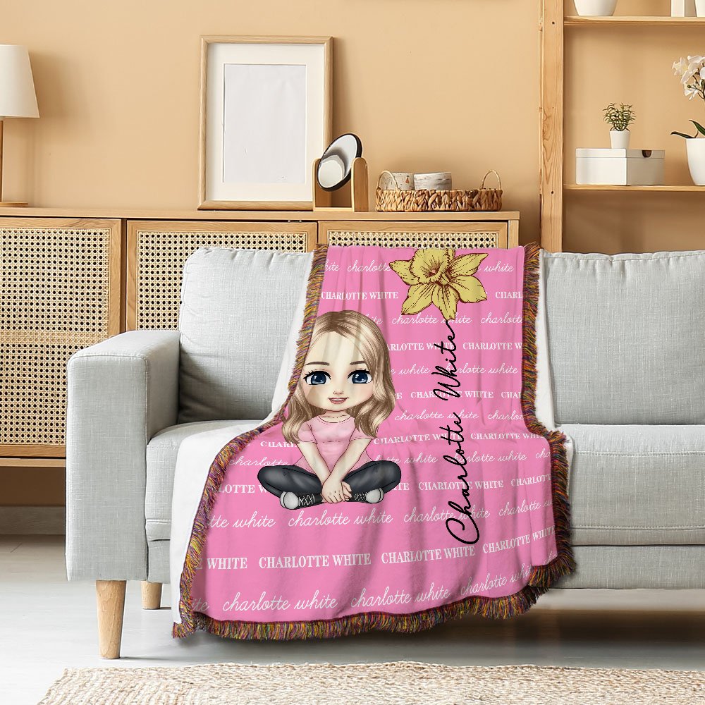 Avec ses fleurs de naissance éclatantes et son adorable personnage de bande dessinée, cette couverture peut être personnalisée avec un nom, ce qui en fait un cadeau sincère et unique pour les personnes aimées en toute occasion.