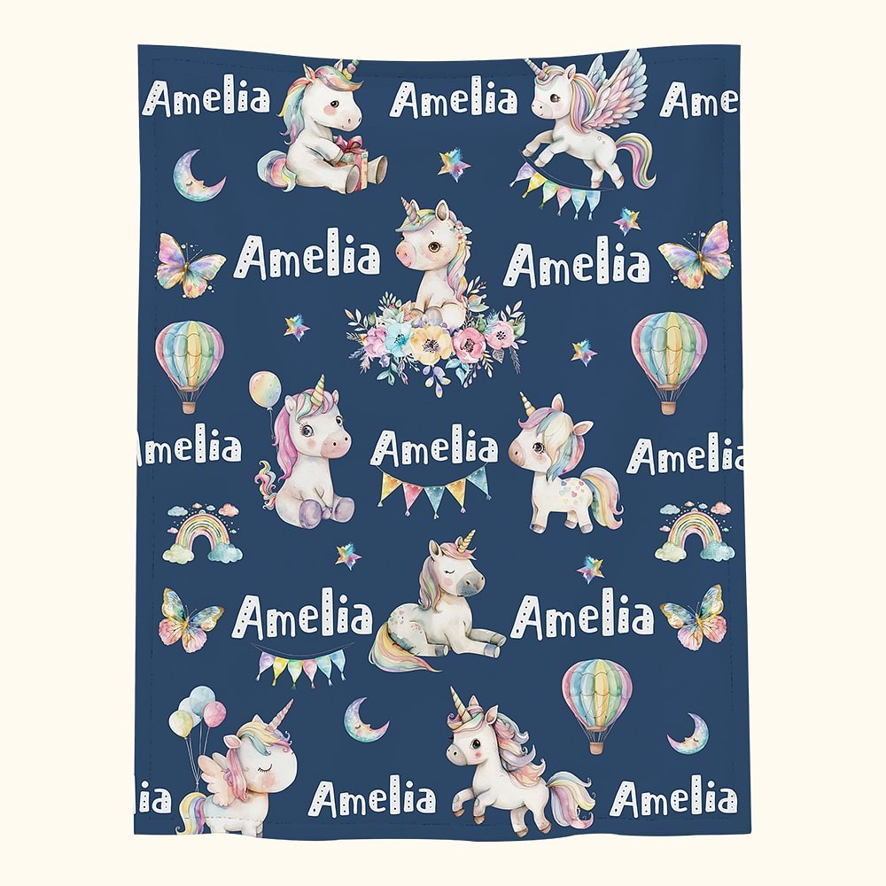 Cette couverture présente un mélange unique de licornes fantastiques, de papillons, d'étoiles scintillantes et d'un arc-en-ciel, capturant la magie de l'enfance d'une manière vraiment unique. Des éléments oniriques comme une montgolfière et un croissant de lune inspirent la créativité. Personnalisée au nom de votre enfant, il l'invite à vivre des aventures magiques avec son doudou.