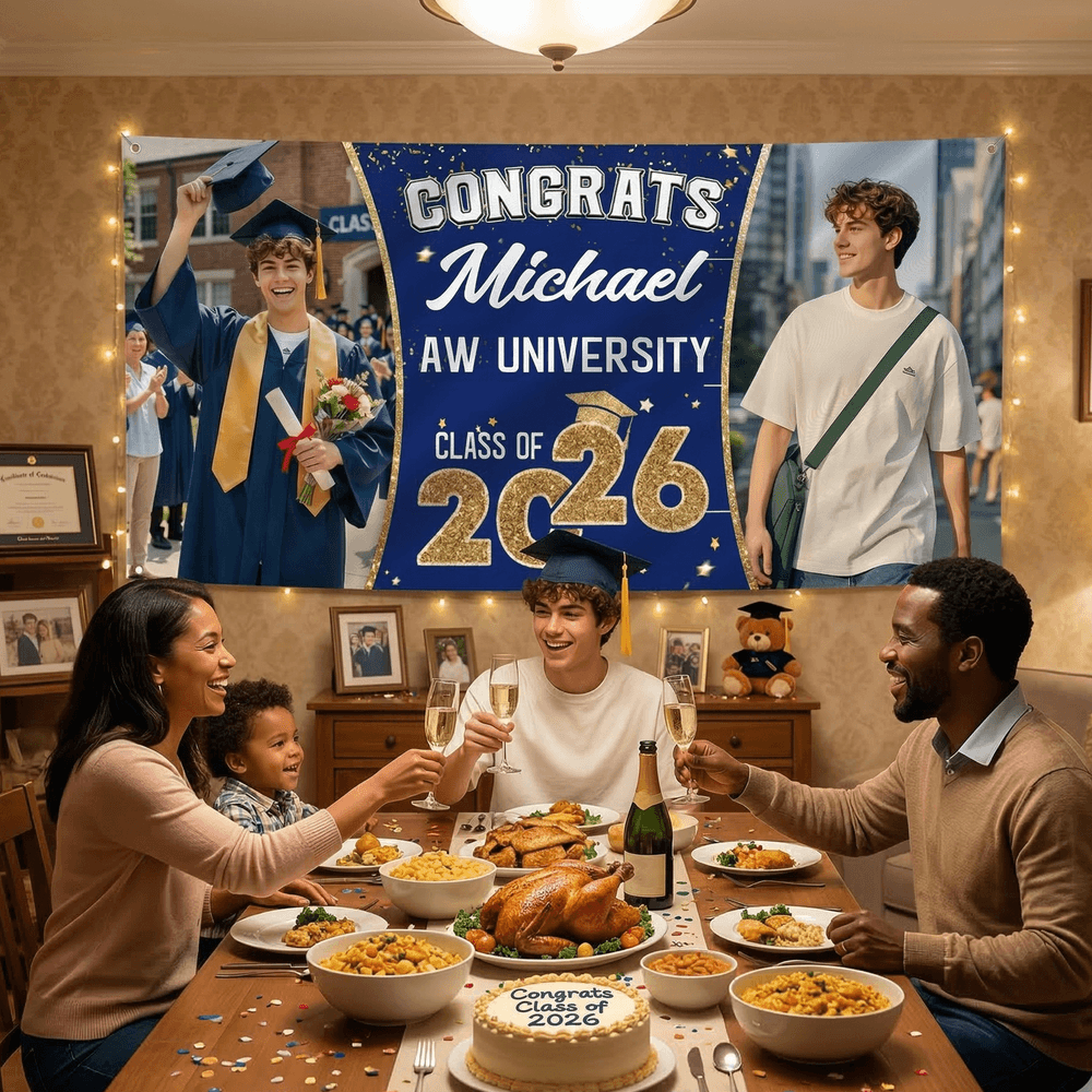 Fabriqué à partir d'un tissu en polyester de première qualité, il présente un excellent drapé, une grande durabilité, une résistance au froissement, une bonne tenue des couleurs, et il est imperméable et facile à nettoyer. L'impression haute définition garantit des images claires. Il peut être suspendu pour créer une atmosphère de fête ou plié pour un stockage à long terme, ce qui vous permettra de vous remémorer votre diplôme.