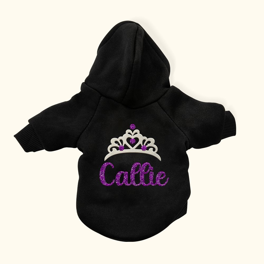 Ce sweat à capuche est orné d'une charmante couronne multicolore qui fera tourner les têtes ! Les couleurs vives attirent l'attention et reflètent la personnalité de votre chien. Le nom pailleté au dos ajoute une touche personnelle qui rend ce sweat à capuche unique.