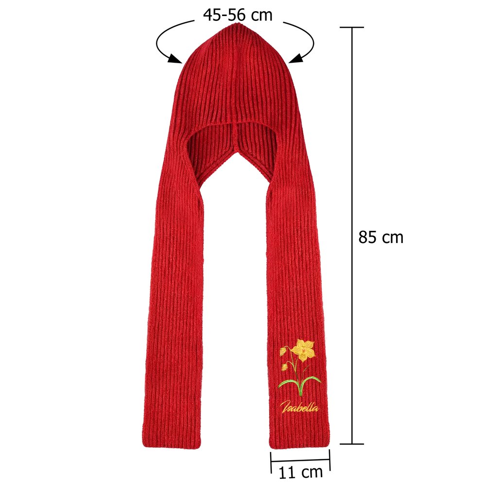 Ce bonnet à capuche en tricot 2 en 1 est orné d'une broderie de fleurs de naissance colorée et personnalisable, associée à des prénoms. Déclinée en plusieurs couleurs, elle transforme un indispensable de l'hiver en une pièce unique sur le thème du nom et de la fleur, qui reflète le style de chacun.