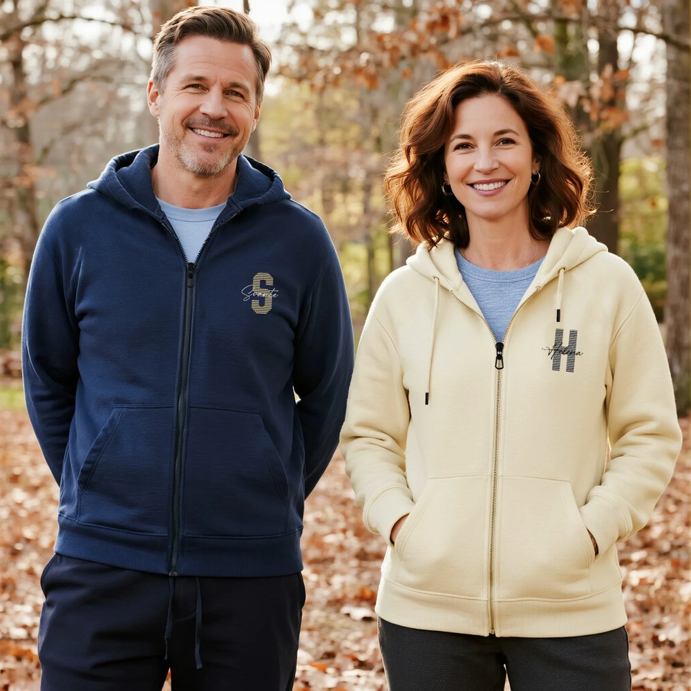 Ce sweat à capuche entièrement zippé et brodé est une pièce d'apparat qui ne passera pas inaperçue. Non seulement il est disponible en 8 couleurs, dont le blanc, le noir et le bordeaux, mais vous pouvez également le personnaliser avec votre nom et vos initiales, ce qui rend chaque pièce unique.