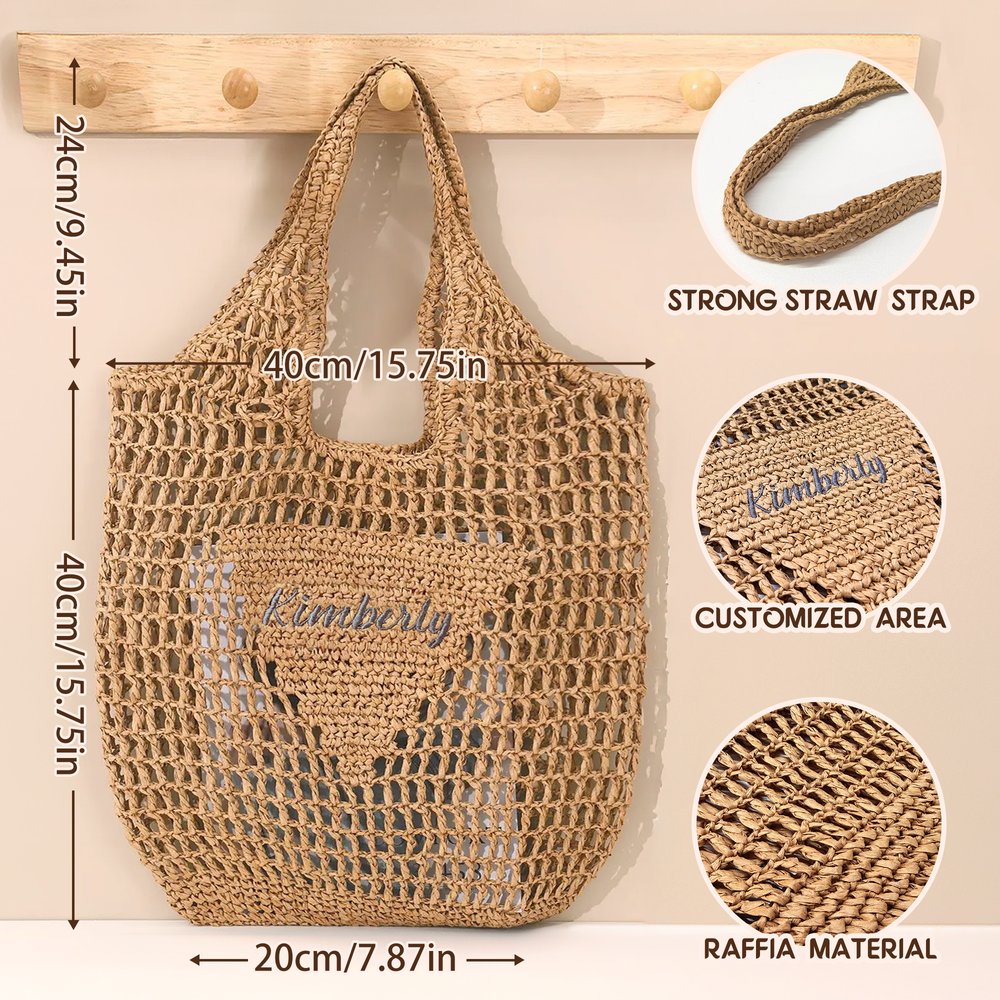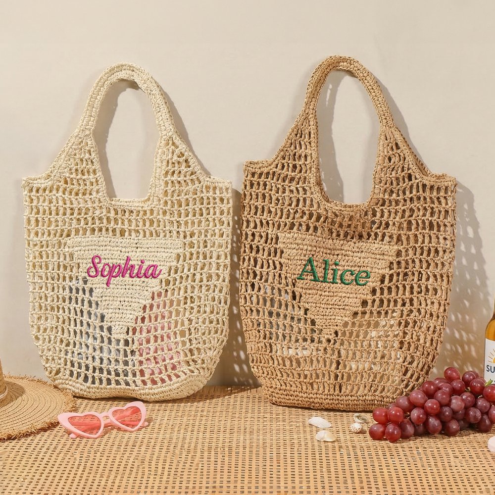 Le corps du sac est tissé en raphia naturel, avec une texture et un toucher frais et naturel qui s'accordent parfaitement avec l'ambiance décontractée de la plage et des vacances d'été. Il est disponible en deux couleurs classiques : blanc cassé rafraîchissant et kaki naturel, pour répondre à différentes occasions et besoins de style. Son principal atout est son service de personnalisation : vous pouvez choisir votre couleur de fil à broder et votre police de caractères préférées pour broder votre nom sur le sac, créant ainsi un design unique et personnalisé.
