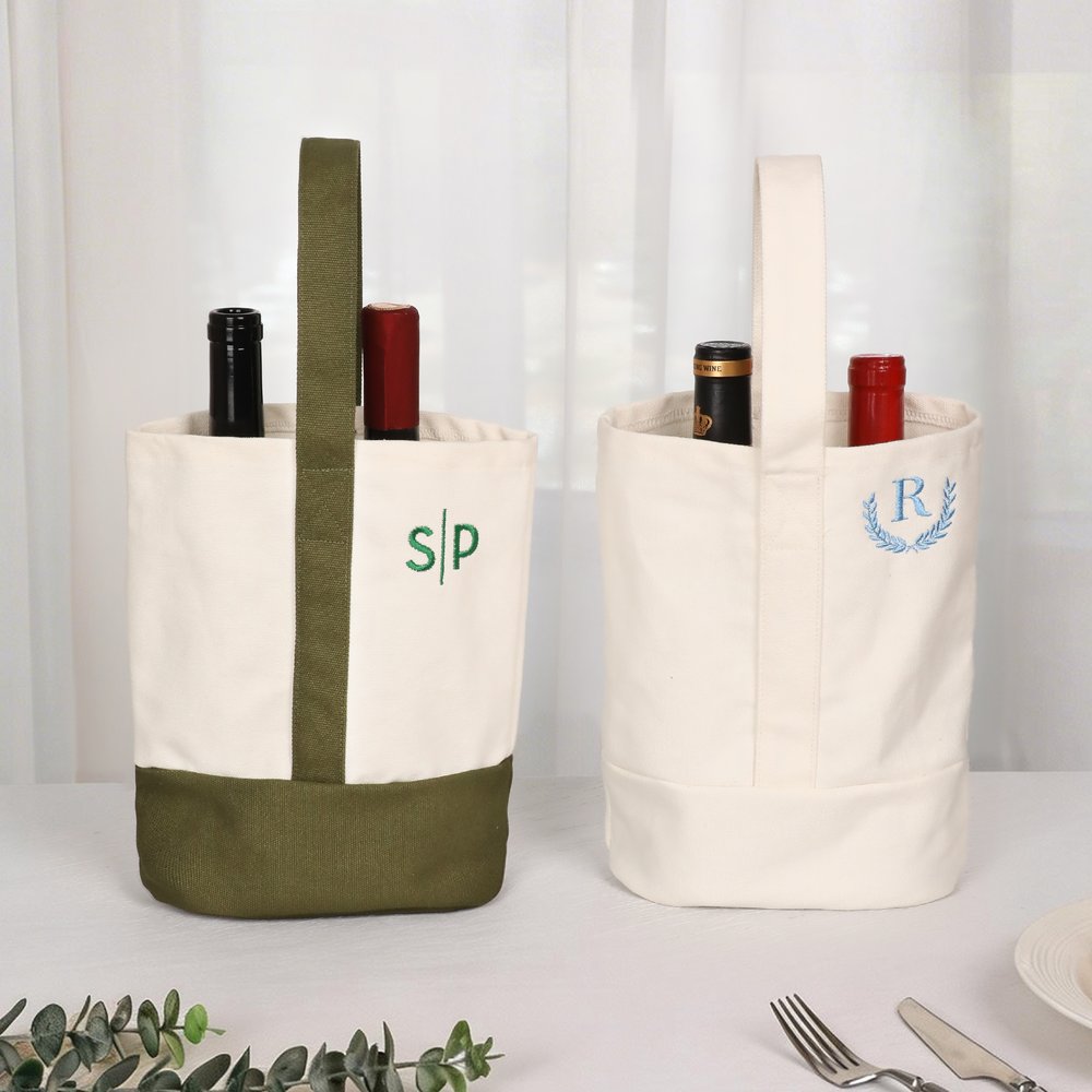 Ce sac à vin personnalisé en toile est conçu pour ceux qui apprécient les détails raffinés, ajoutant une touche d'élégance à toute présentation de vin. Vous pouvez personnaliser la couleur du sac, la couleur de la broderie et les initiales pour créer un accessoire de vin unique et élégant.