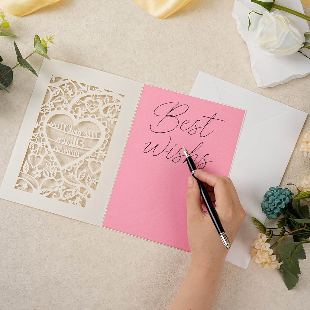 Fabriquée avec une finition manuelle méticuleuse, cette carte exquise comporte un encart en papier de couleur de première qualité qui complète magnifiquement le délicat motif floral grâce à sa texture raffinée et à l'association harmonieuse des couleurs. Complété par une enveloppe assortie, cet ensemble soigneusement sélectionné garantit que votre message sincère est présenté avec élégance et soin dès sa réception.