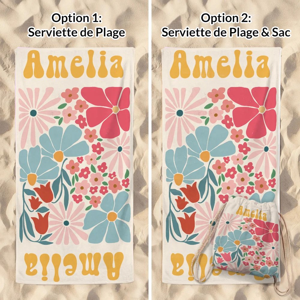 Cette serviette de plage associe parfaitement des fleurs sophistiquées à des couleurs vives, mettant en valeur sa beauté naturelle et son design élégant. Vous pouvez également la personnaliser avec votre nom dans une jolie police, ce qui lui confère une atmosphère unique.