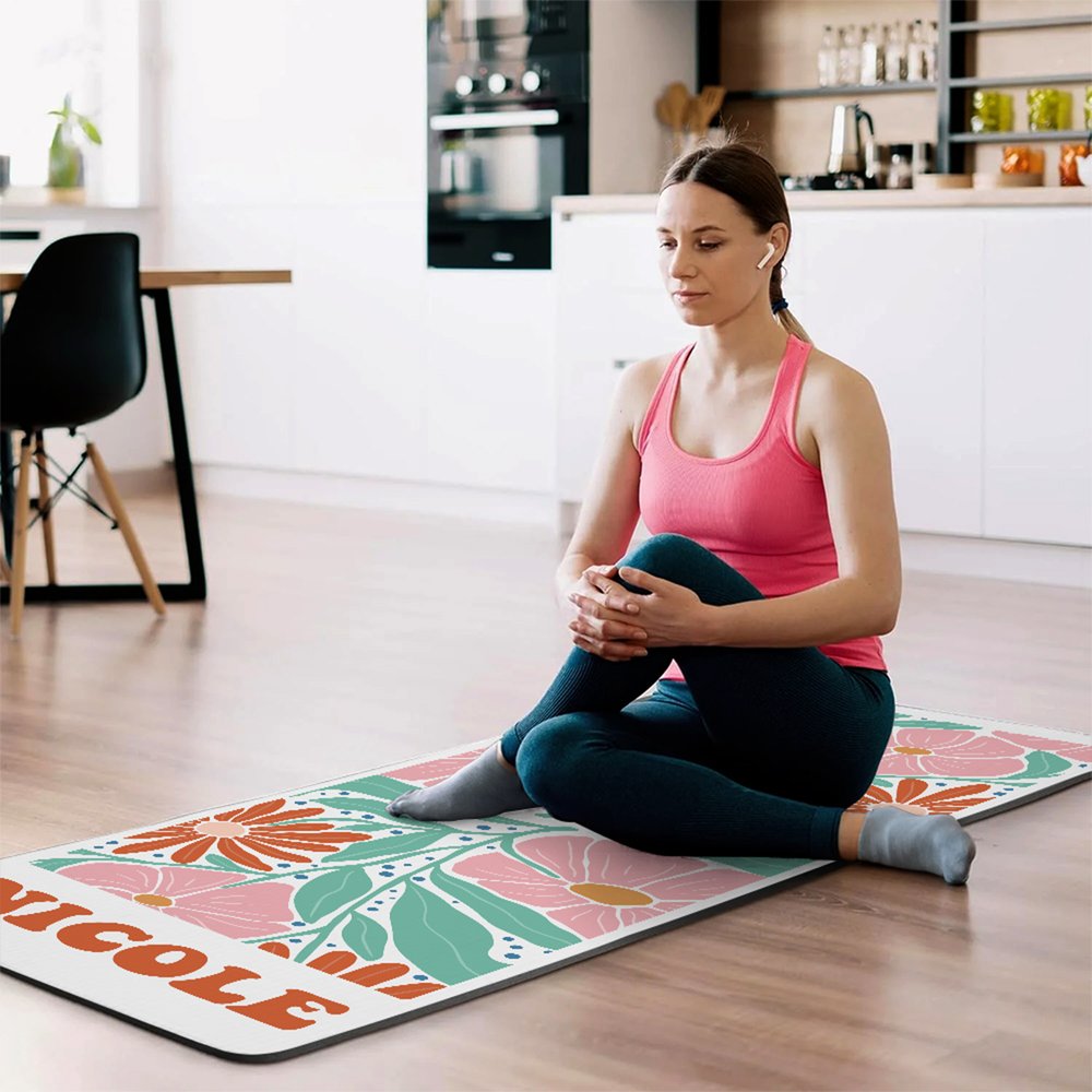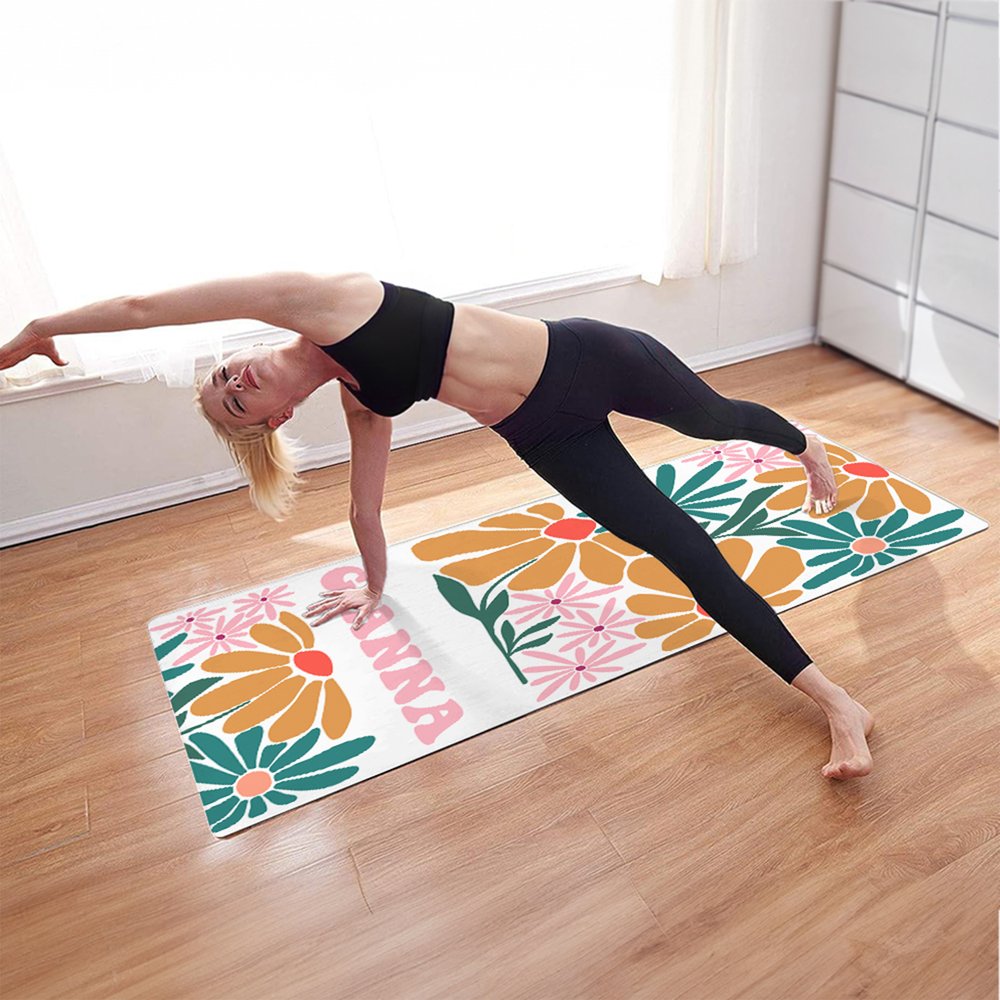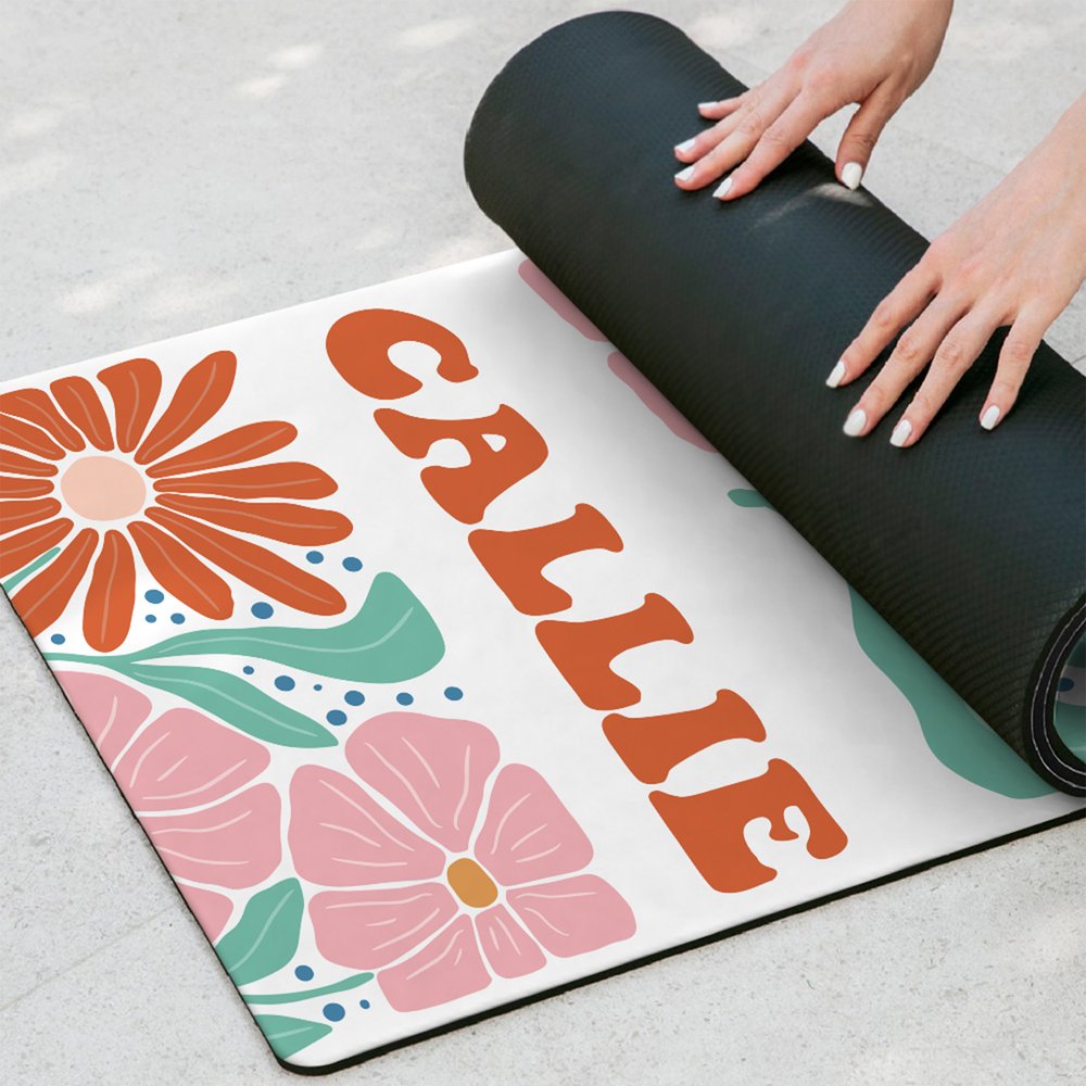 Le tapis de yoga présente des motifs floraux estivaux vibrants qui capturent l'éclat et la vitalité de la saison. Vous pouvez le personnaliser avec votre nom, ce qui en fait un compagnon d'entraînement unique qui met en valeur votre personnalité et votre style. Ce design unique ne se contente pas d'attirer l'attention, il vous incite également à vous exprimer à chaque séance d'entraînement.