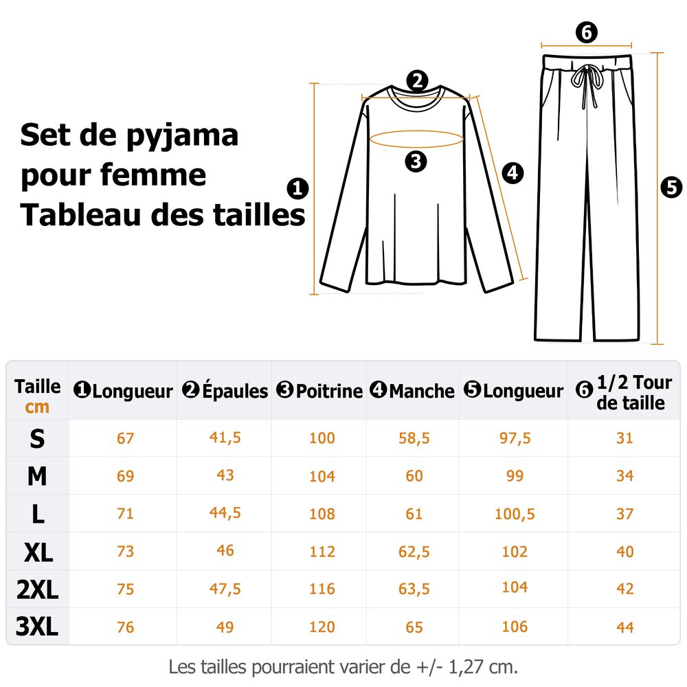 | Matière: | Haut de pyjama - 100% coton, Pantalon de pyjama - 95% polyester, 5% spandex |