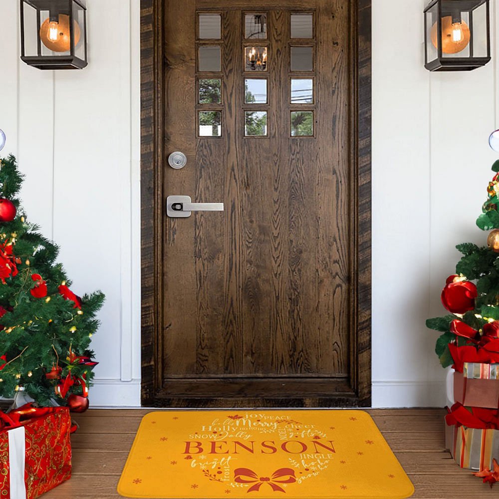 Notre paillasson s'inspire d'un élément classique de Noël : la couronne de gui. La couronne de gui de Noël entourée de divers messages magnifiques signifie non seulement les bénédictions et la chance de la fête, mais ajoute également une touche de chaleur et de romantisme. L'emplacement central peut être personnalisé avec votre nom de famille, ce qui confère à cette décoration de Noël plus de spécificité et d'appartenance.