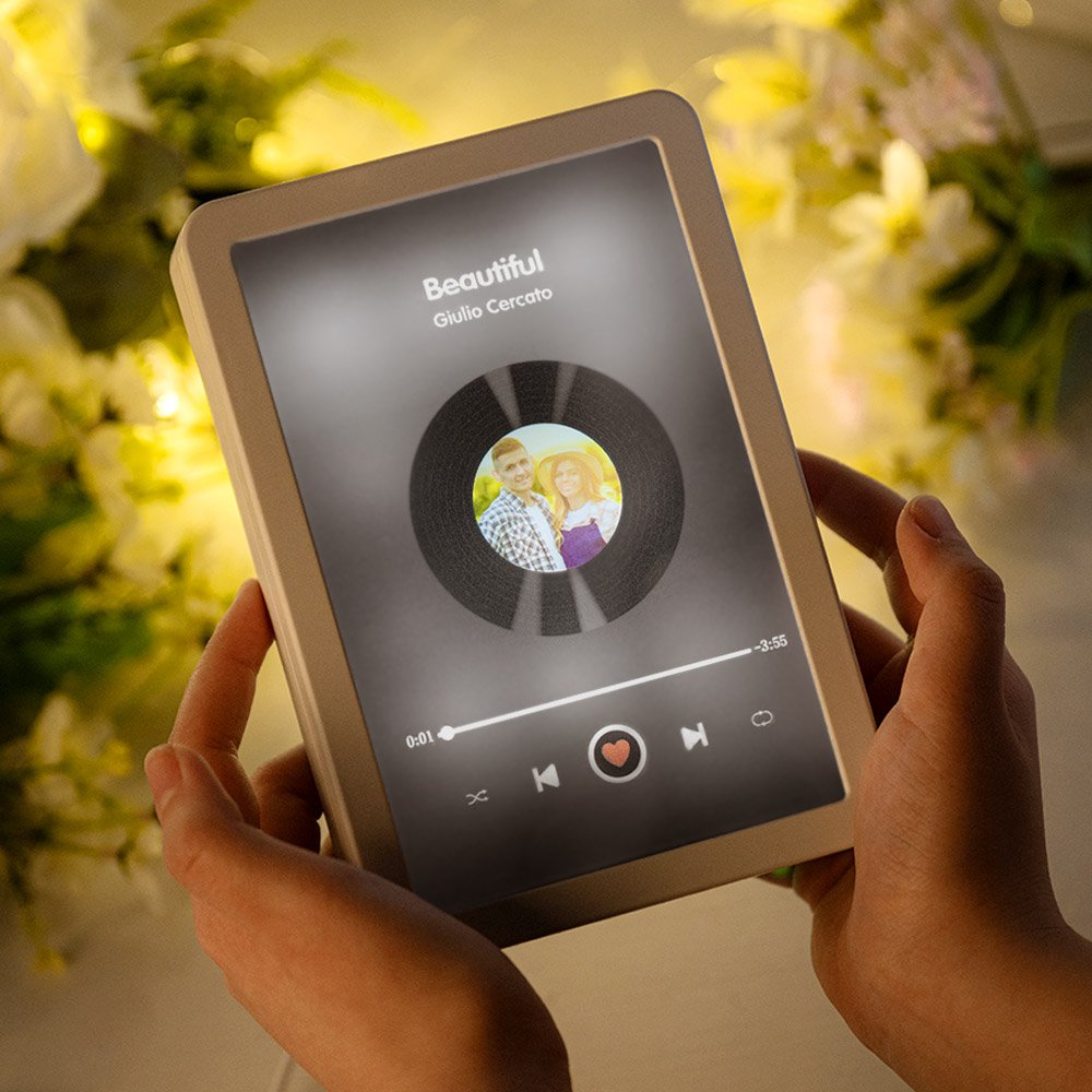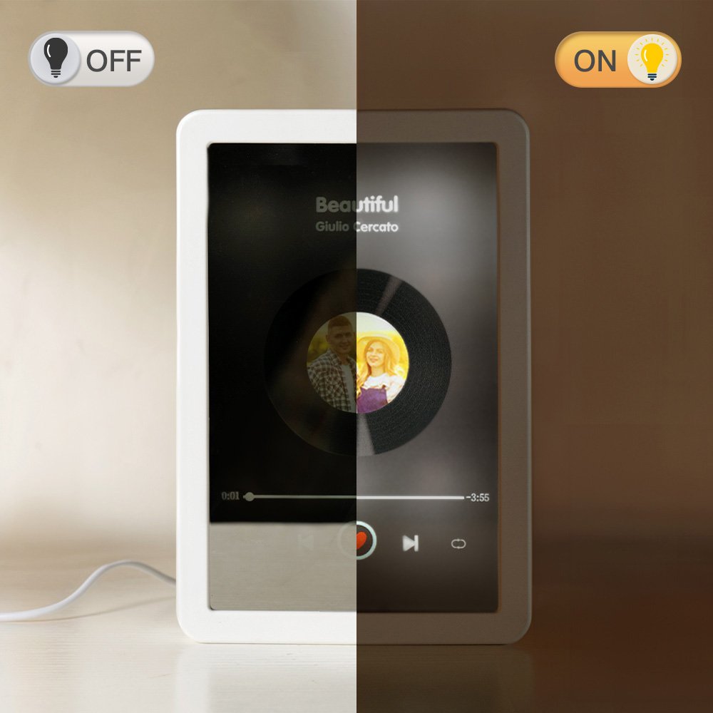 | Caractéristiques: | Surface lisse, lumière LED, durable, style lecteur de musique, personnalisation de photos et de textes |