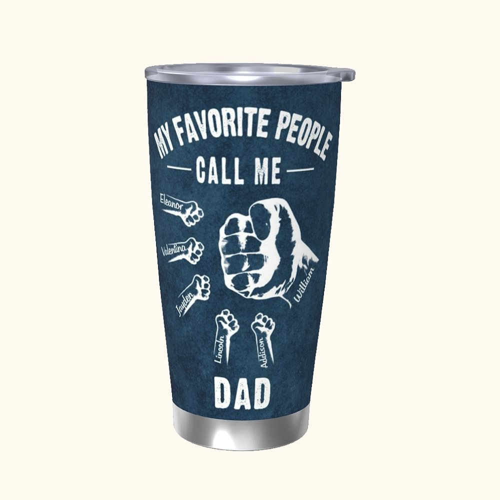 Gobelet Isotherme Personnalisé avec Surnom et 1-16 Noms sur Poings Papa et Enfants Thème My Favourite People Call Me Cadeau Fête des Pères pour Homme