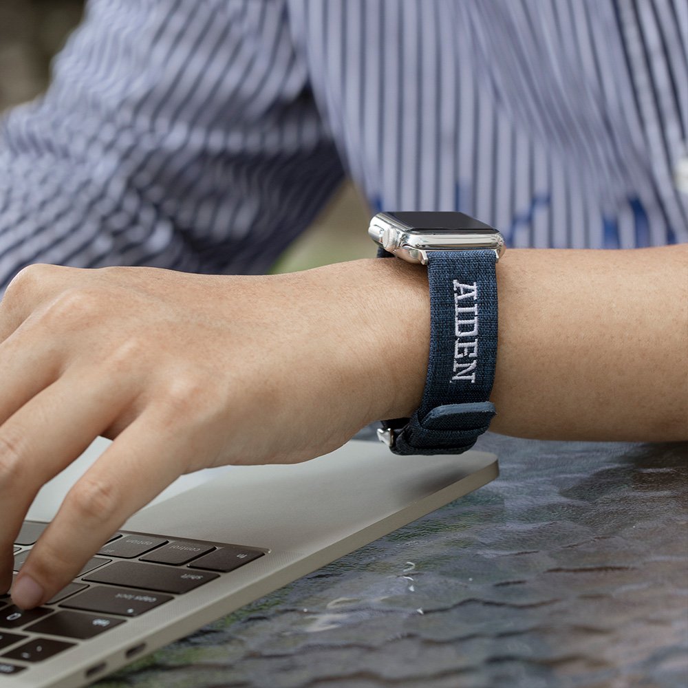 La toile est durable et bien faite et peut résister à l'usure quotidienne. Sa souplesse épouse la forme de votre poignet et lui confère une tenue à la fois confortable et confortable. Les coutures autour des bords sont précises, ce qui permet au bracelet de conserver sa forme et son intégrité au fil du temps. Les composants métalliques, tels que les connecteurs et la boucle, sont de haute qualité et assurent un maintien sûr et fiable sur votre montre. La broderie est réalisée avec du fil de haute qualité, ce qui permet au nom de ressortir clairement et de durer longtemps sans s'estomper ni s'effilocher.