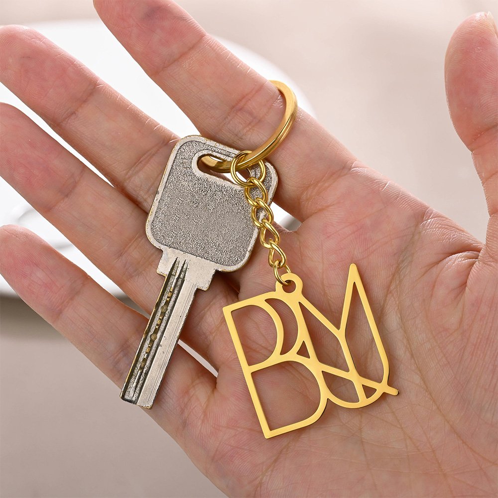 Ce porte-clés a été conçu avec soin en dessinant un logo unique qui incorpore les lettres majuscules de votre nom. Le processus de conception prend en compte l'esthétique des lettres et les fusionne en un logo unique qui résonne avec votre personnalité. Que votre nom soit court ou long, chaque lettre est soigneusement disposée pour créer un charme harmonieux et visuellement attrayant.